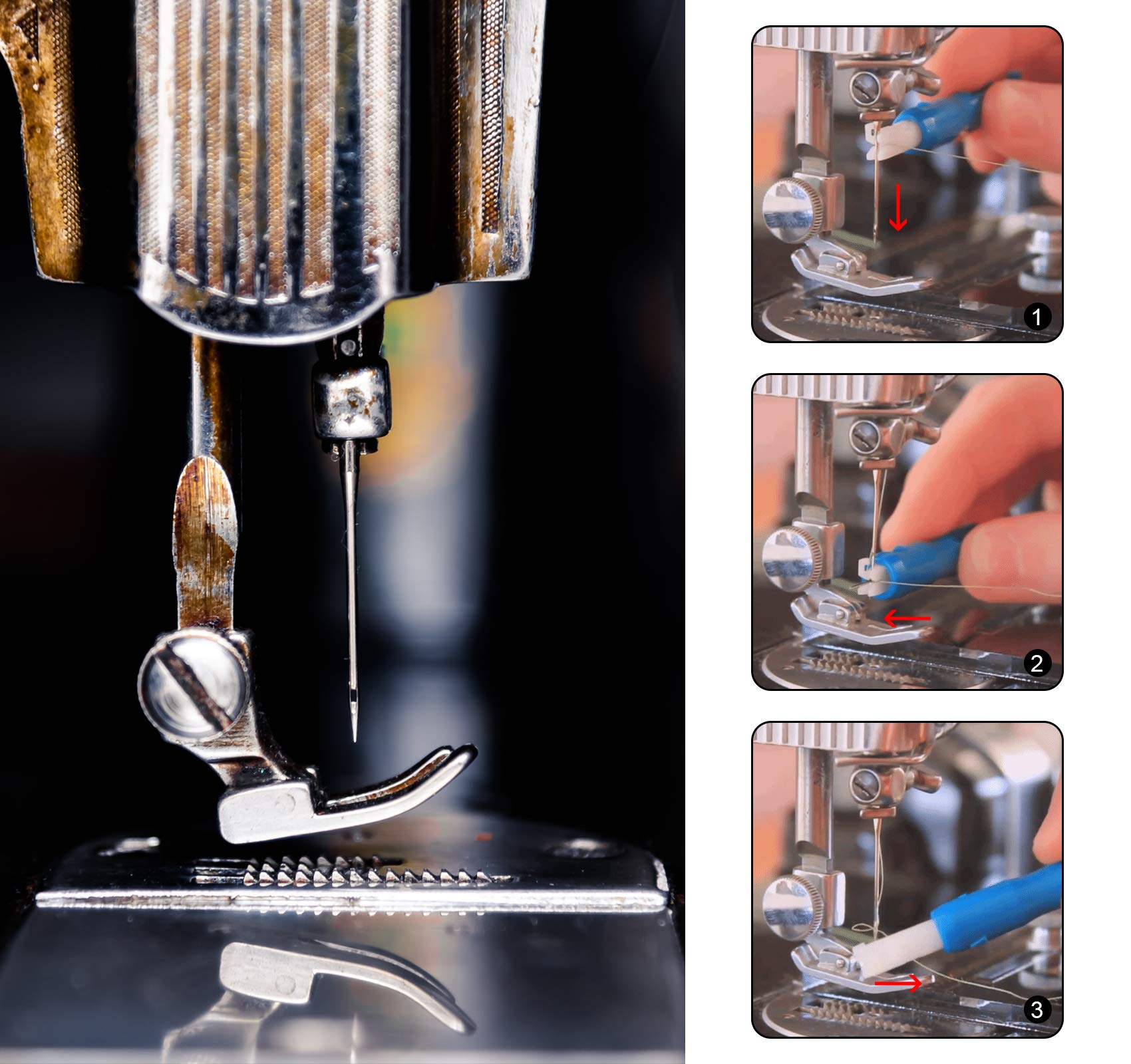 - Needles for sewing machine - Each size of sewing needle has a corresponding box for storage, easily install the sewing machine needle with the attached threader. Threader (blue or white)color random.