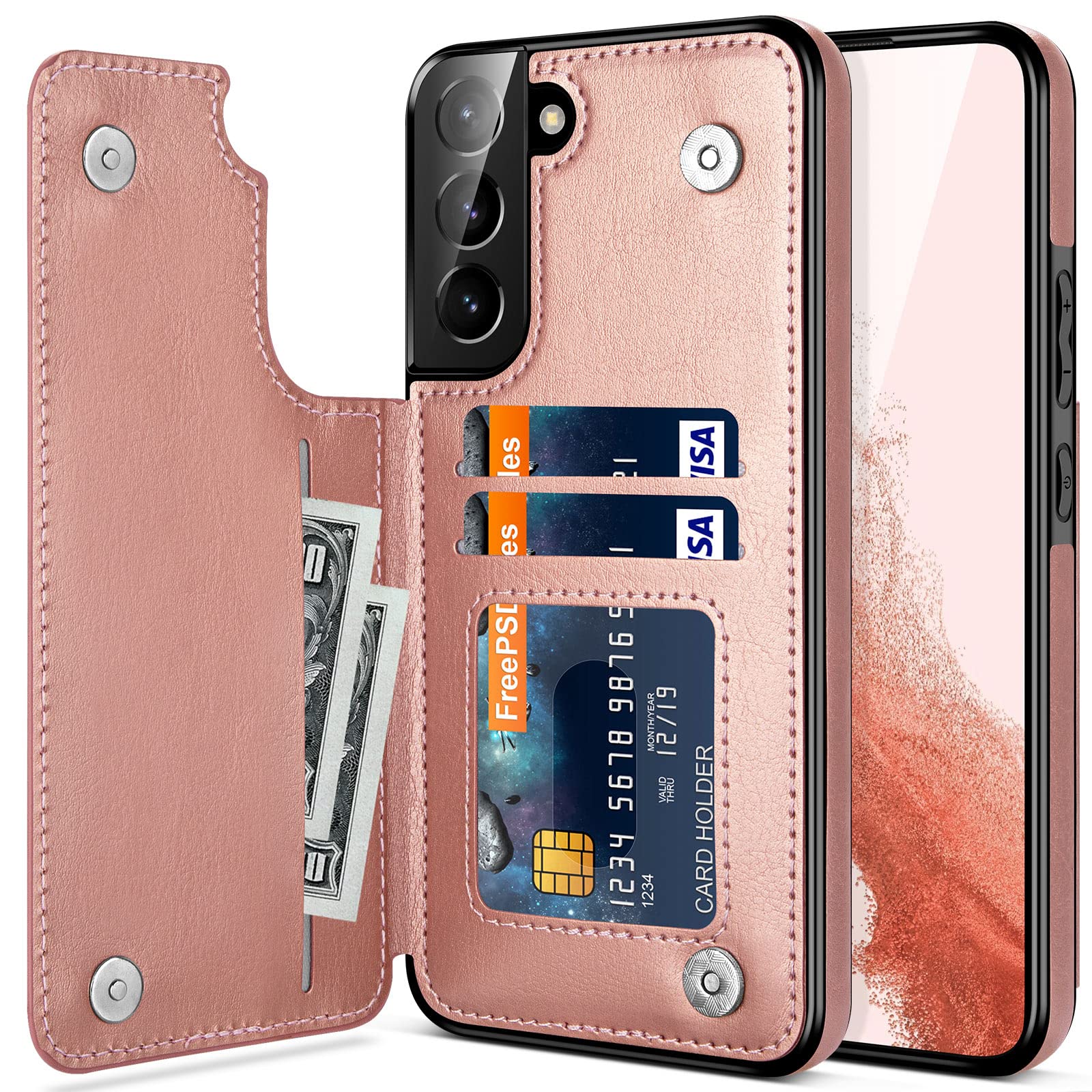 - Original Flip Cases – Galaxy S22 Case, for Samsung Galaxy S22 Cases Wallet Case Men Women ID Credit Card Slot Holder Cash Pocket PU Leather Sleeve Double Magnetic Closure Clasp Galaxy S22 5G Flip Cases Rose Gold by iMangoo