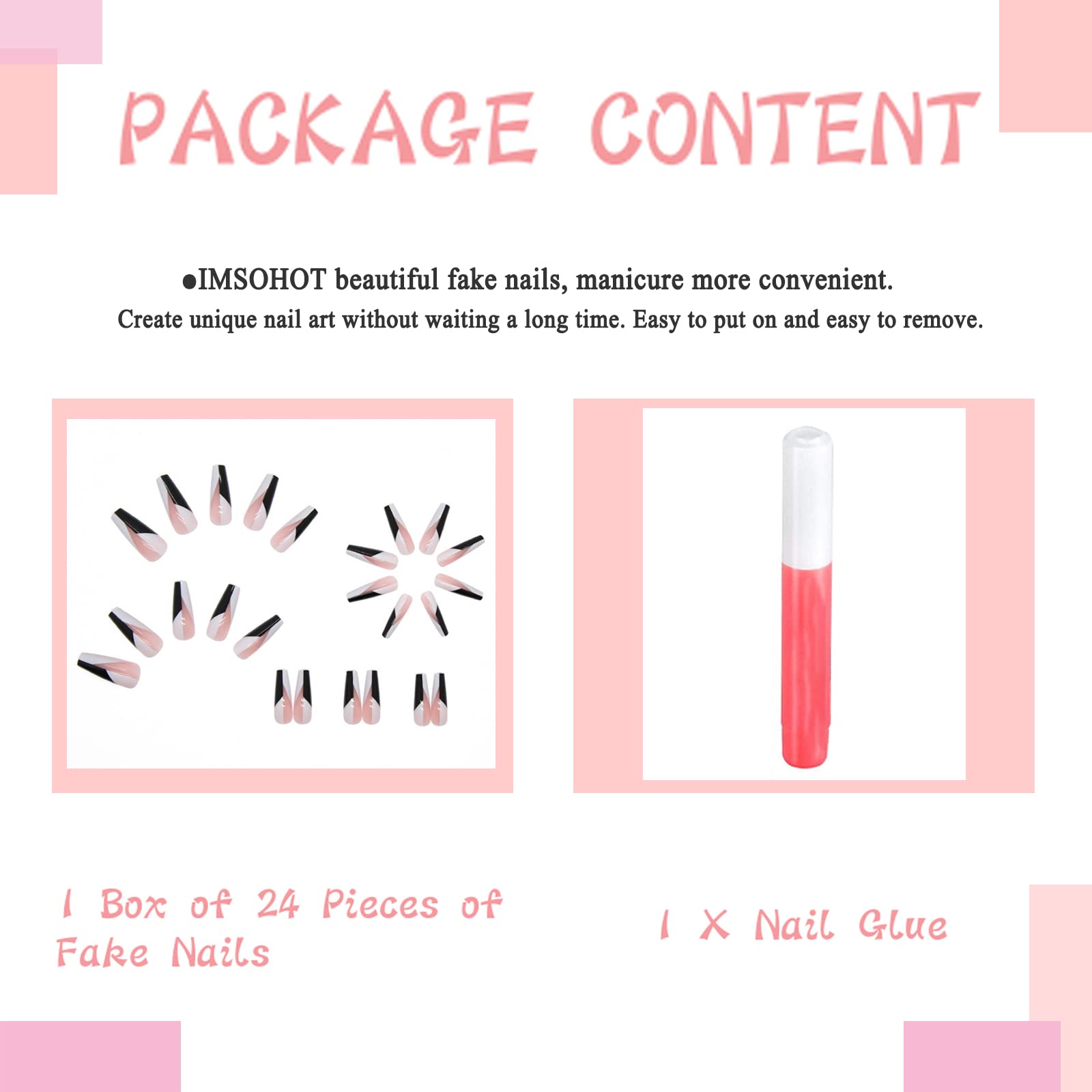 Discover the authentic 24Pcs Coffin Press on Nails Long Glossy Ballerina False Nails with Designs Black White Fake Nails Acrylic Nails Glue on Nails for Women and Girls by IMSOHOT, part of our Artificial Nails collection. Imported directly from the USA and sourced from trusted suppliers, this product is 100% authentic and delivered anywhere in India at the best price.