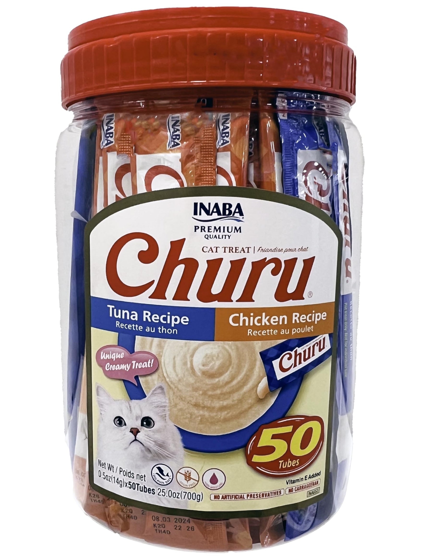 - Original Pastes – Churu Cat Treats, Grain-Free, Lickable, Squeezable Creamy Purée Cat Treat/Topper, 25 Tuna & 25 Chicken by INABA