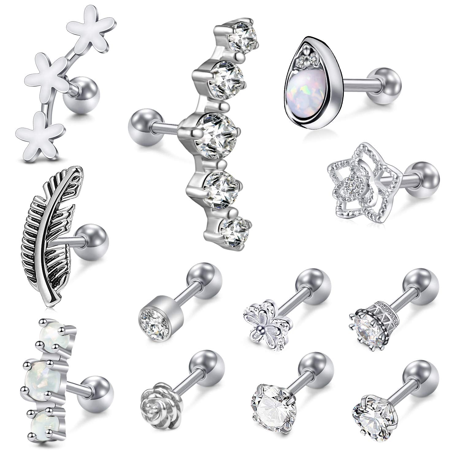 - AFFORDABLE CARTILAGE EARRINGS SET-- Come With 12Pcs Cartilage Piercings A Set, Including 8 Kinds Of Balls Stud Earrings, 4 Kinds Of CZ Stud Earrings; Different Style Earrings Add More Fresh And Difference for Your Everyday Looks.