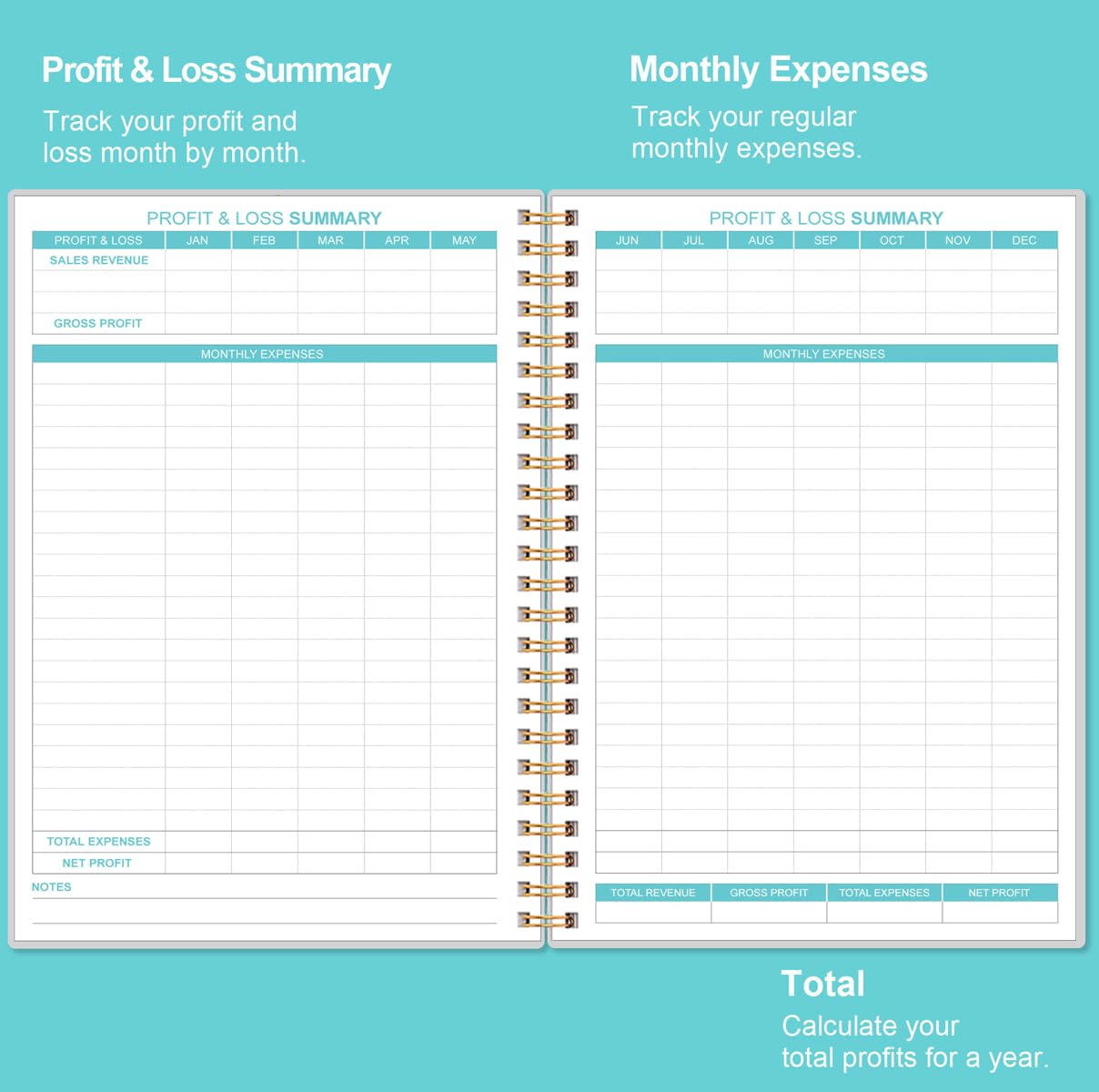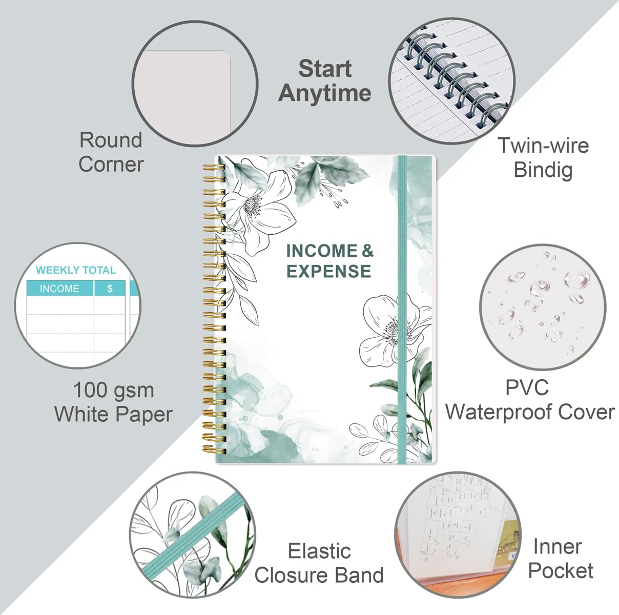 - UNIQUE DESIGN & A5 SIZE - Income and expense log book cover is lovely teal look, golden spiral bound design, size of 5.5 x 8.5. Just the perfectly size to fit in your backpack, purse or laptop case. Without taking up your space and always helping you keep track of your small business
