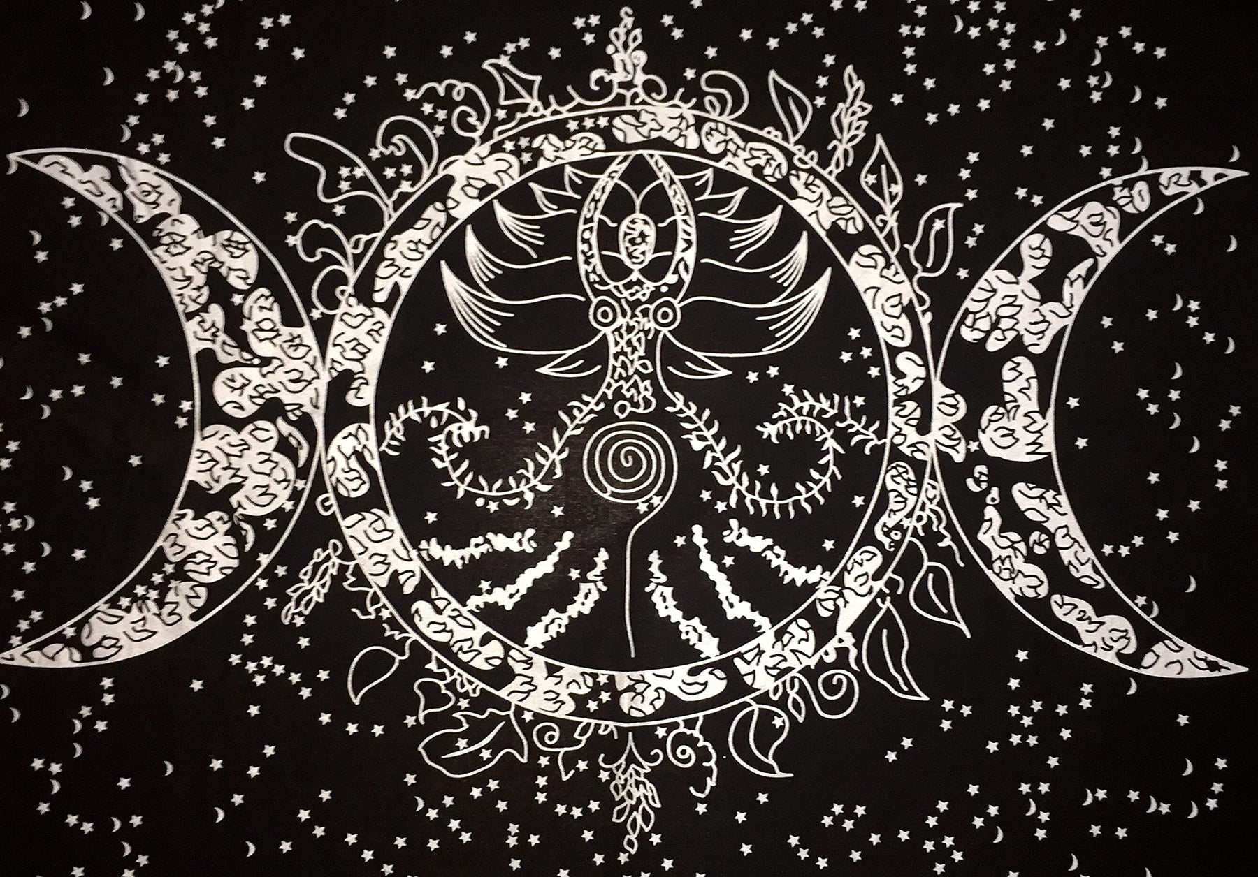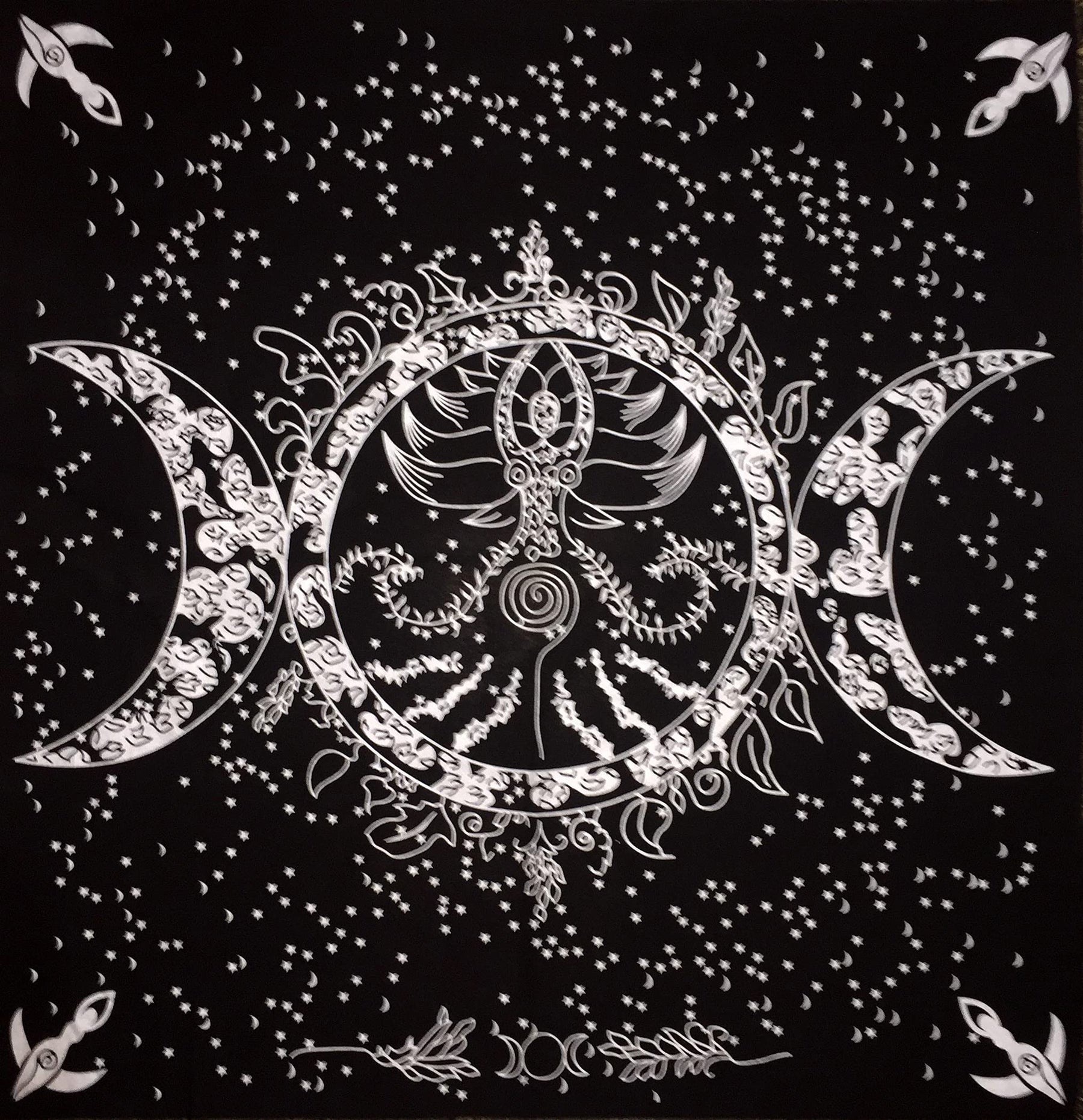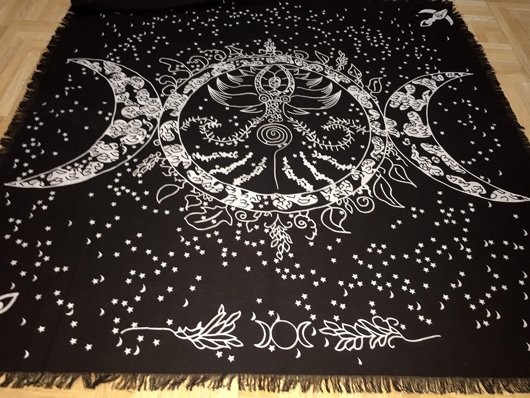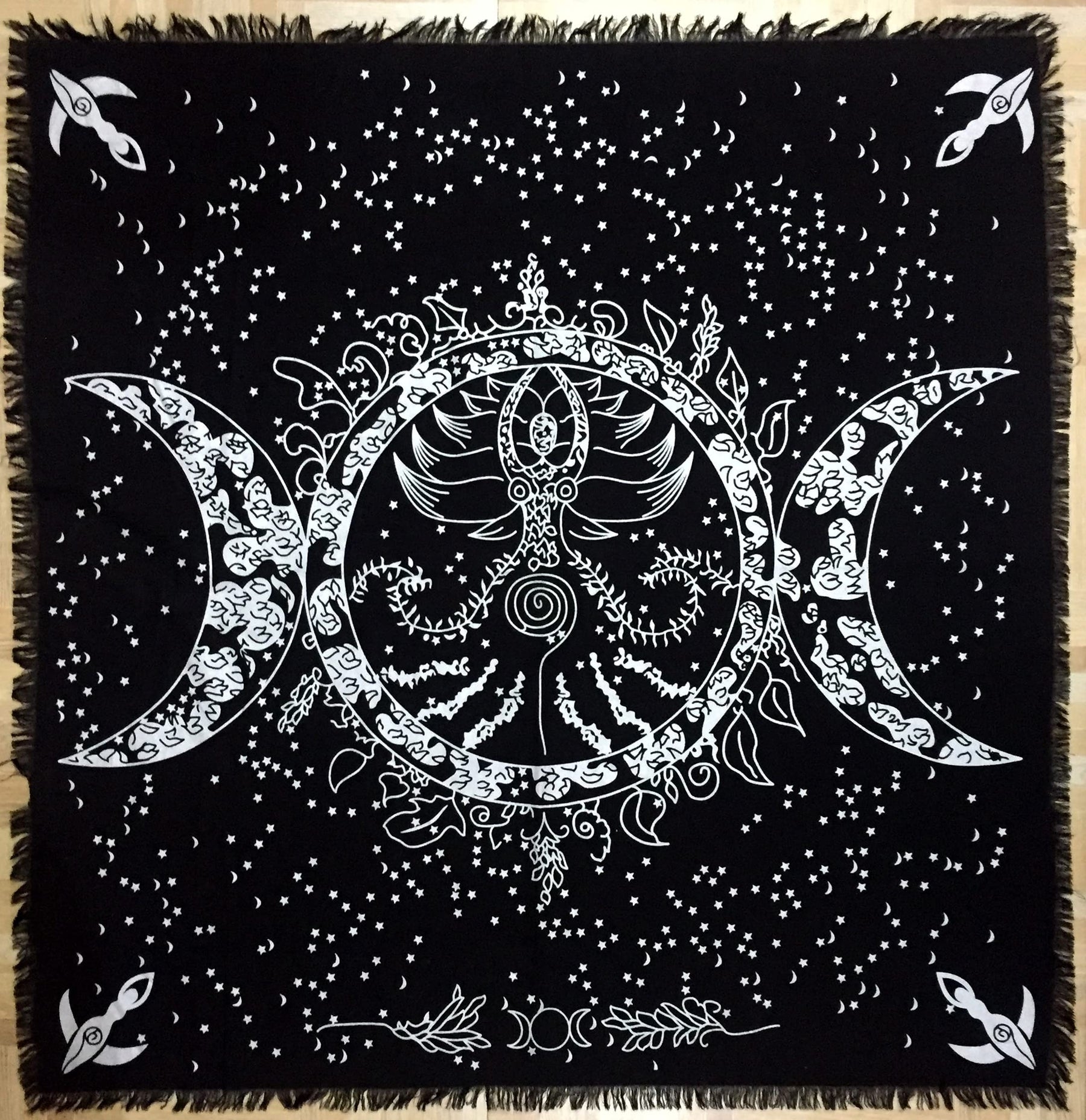 - Original Tablecloths – Altar Cloth Triple Moon Goddess Silver Witchcraft Alter Tarot Spread Top Cloth Wiccan Square Spiritual 24 by 24 Sacred Cloth (Triple Moon Goddess Silver Gold) by Indian Consigners