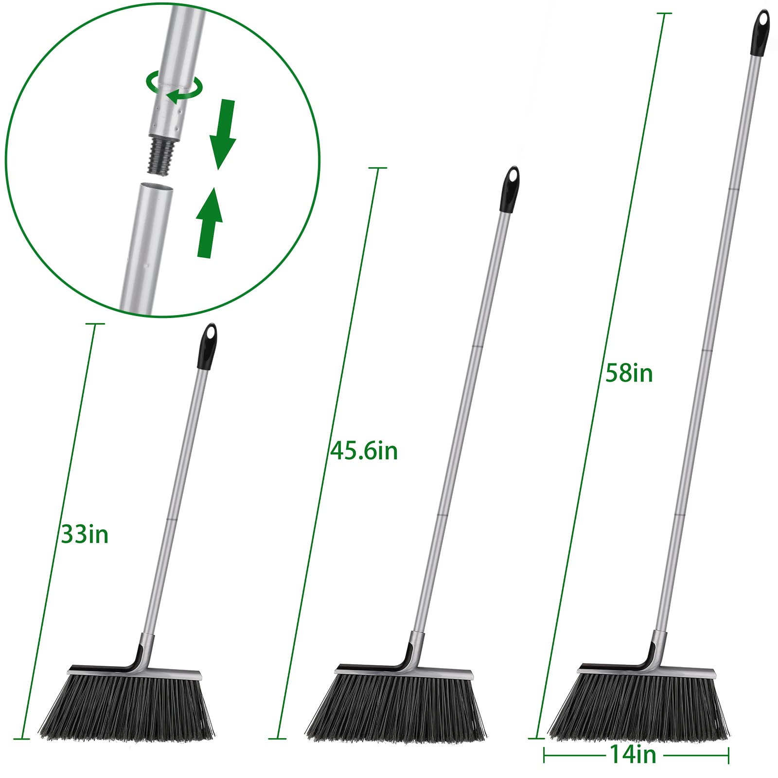 - Upgraded Firm Long Handle Lawn Sweeper with 58adjustable shank,so you won't bend your back and the height can be adjusted according to personal needs. Upgraded connecting thread firmer and easier for sweeping.