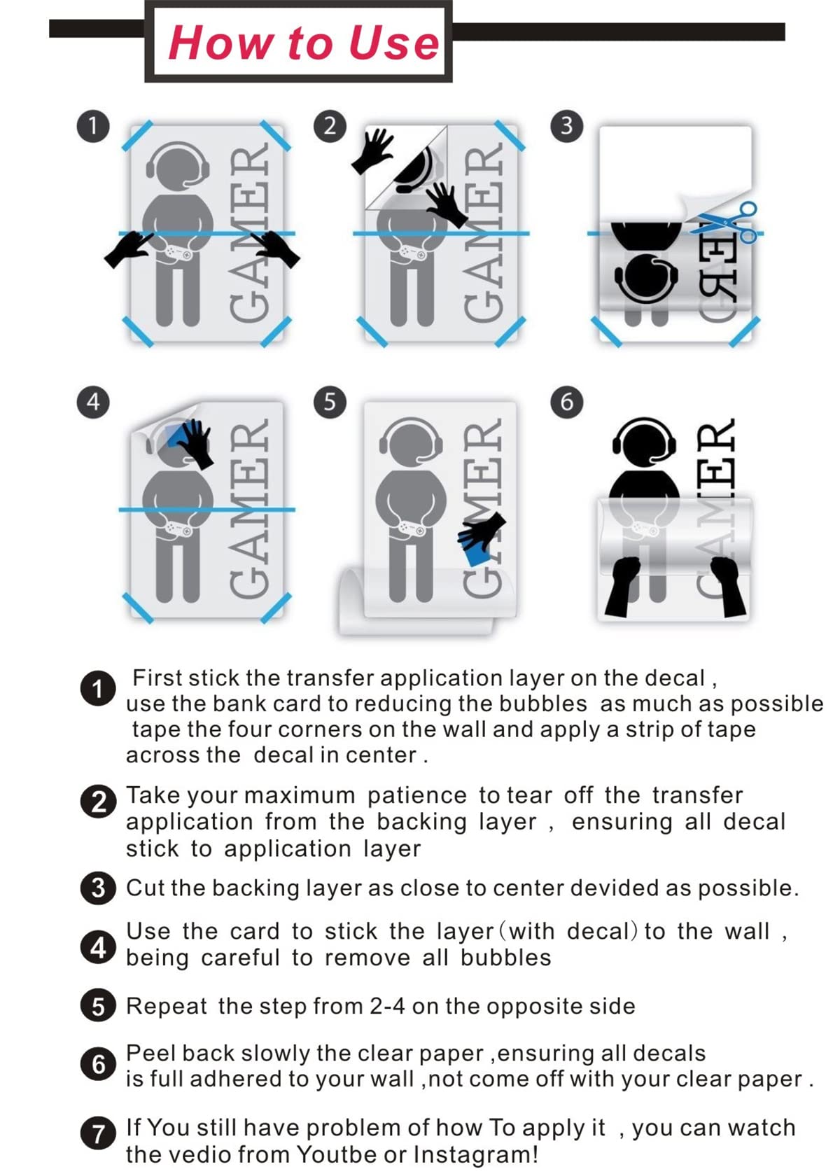 - 4.Can Be Applied To Any Smooth Or Semi-Smooth Surfaces-Mirrors, Glass, Doors, Furniture, Cars Metal, Plastic And Walls.