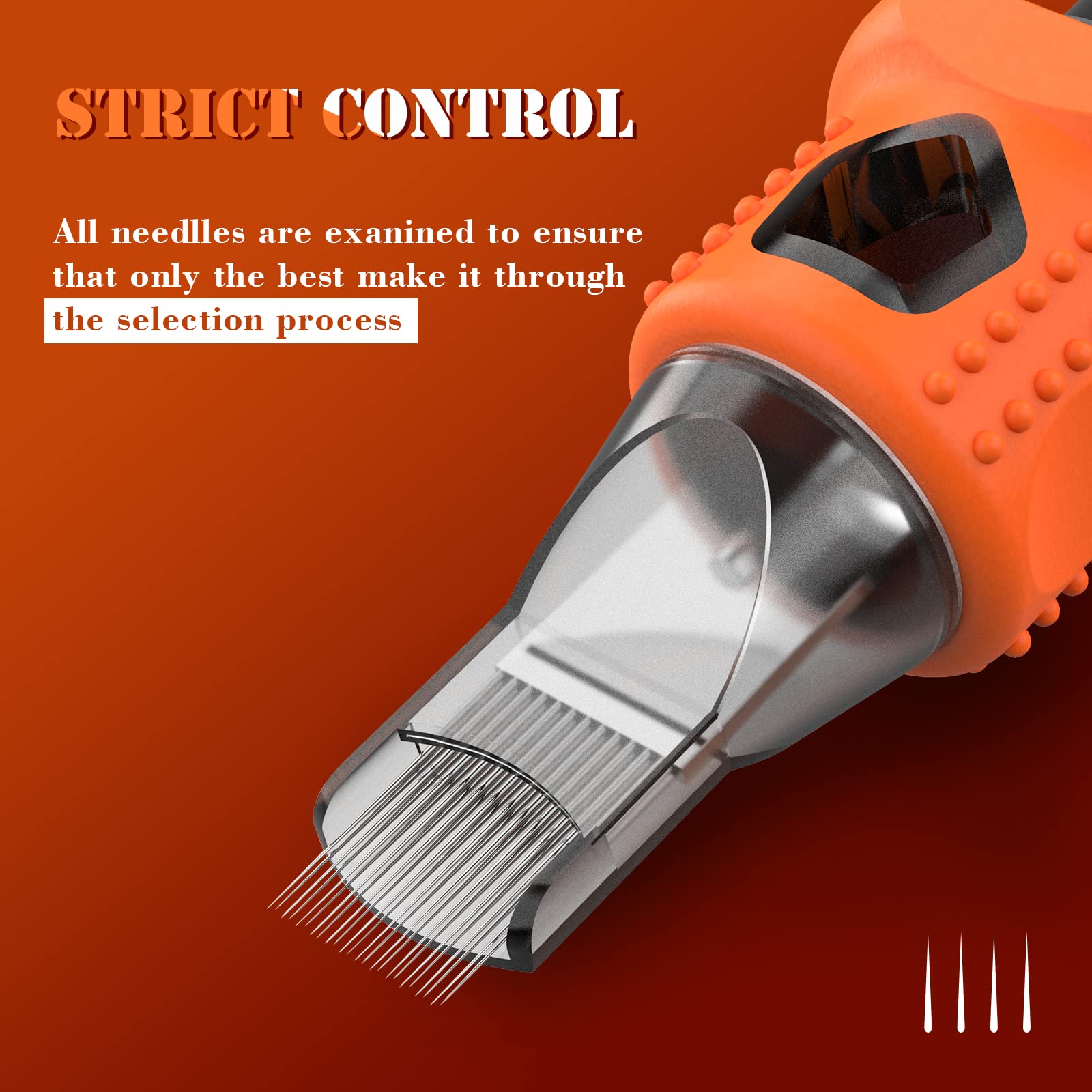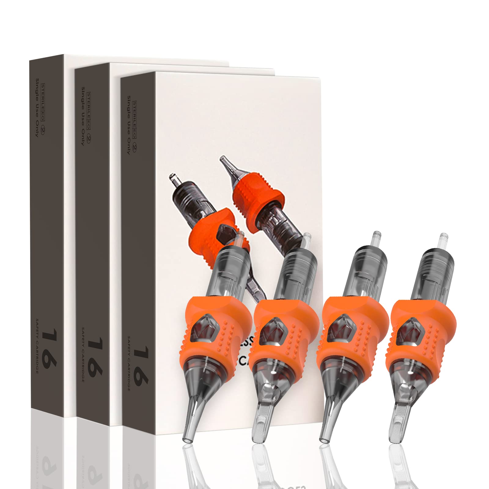 - High Quality:Orange tattoo needles cartridges assorted Silicone Wrap on each needles, locks perfectly and silicone finger ledge is very comfortable. Especially for long sessions, give you more area for rest your hands.