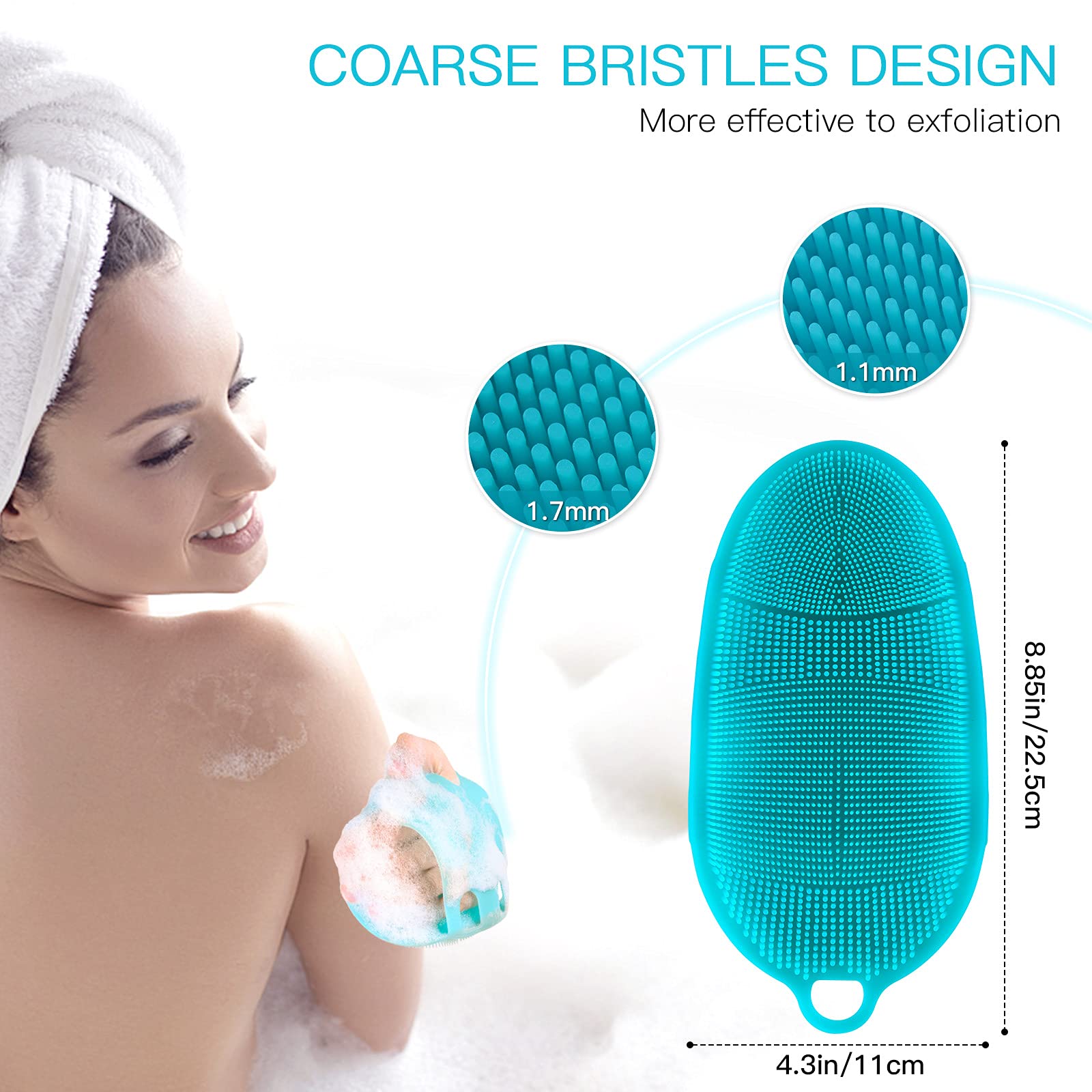 - Fit for: The skin-friendly soft silicone body scrubber is suitable for all kinds of skin, especially for whom with sensitive skin. There is no irritation or injury when clean your body with our shower brush. Also, the silicone material is acid resistant and can use with soda water or essential oils.