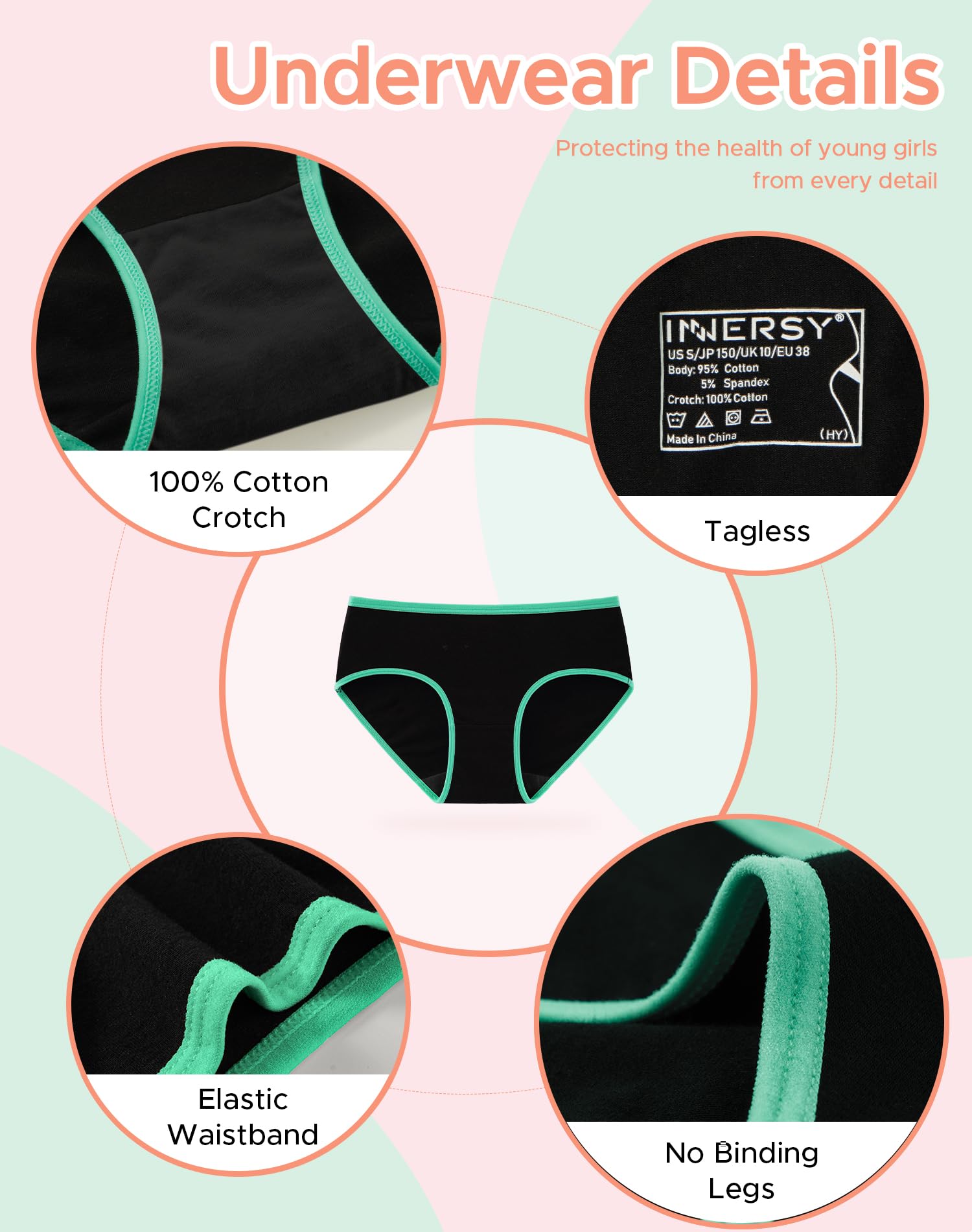 - Original Panties – Girls Cotton Underwear Teen Comfortable Panties Size 8-16 Briefs 6 Pack(12-14 Years, Black With Neon Hem) by INNERSY