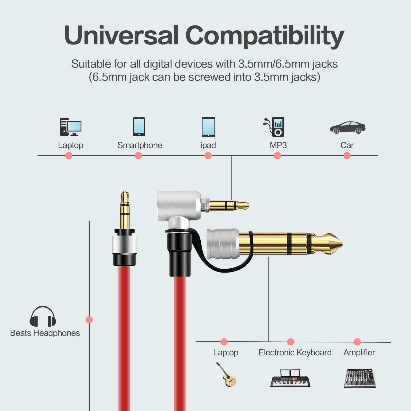 - 3.5mm L-Shaped Replacement Audio Cable for Headphones Monster Beats (Red Color) A replacement accessory for your Monster Beats Headphones