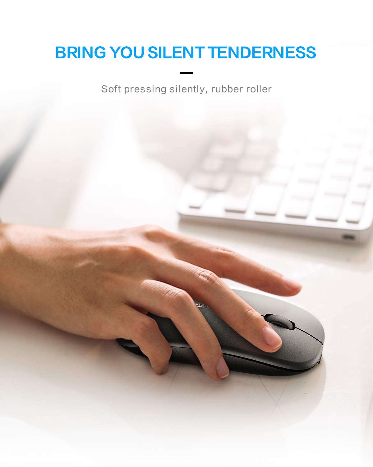 - [Sleek & Portable Design] Designed for comfort and convenience, our ultra-slim wireless mouse is lightweight and easy to carry. It fits conveniently into your laptop bag, making it ideal for travel. Please note that the nano-receiver is placed on the back of the mouse.