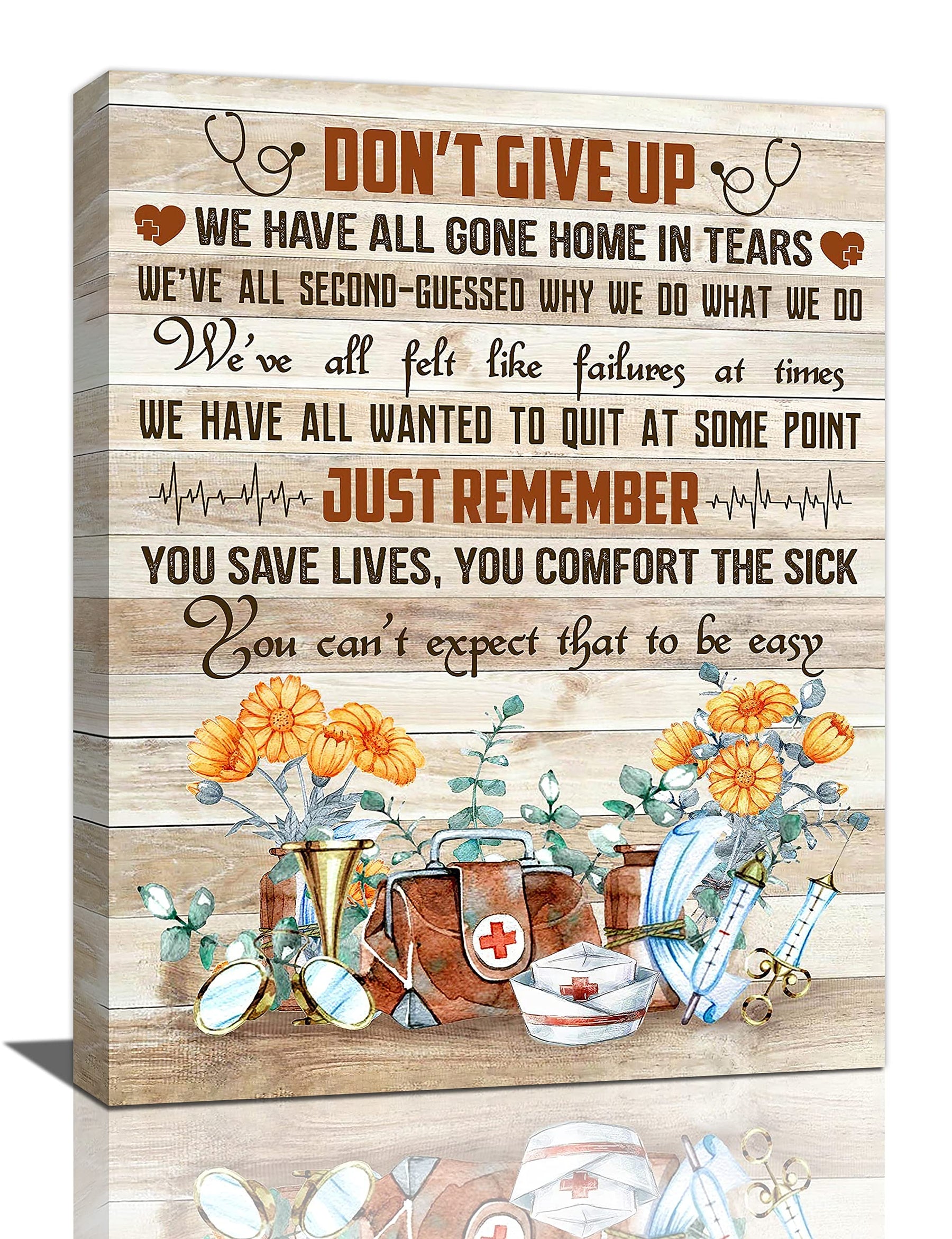 - Original Posters & Prints – Inspirational Wall Art Nurse Cap Injector Flower Picture Painting Gifts for Nurse Medical Staff Team Motivational Quotes Don't Give Up Framed Canvas Prints Modern Office Artwork Decor 12x16 by Katouigb