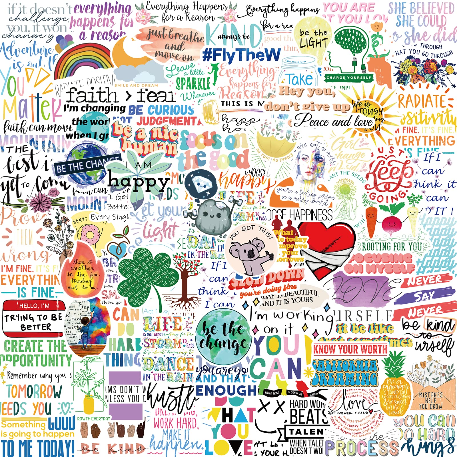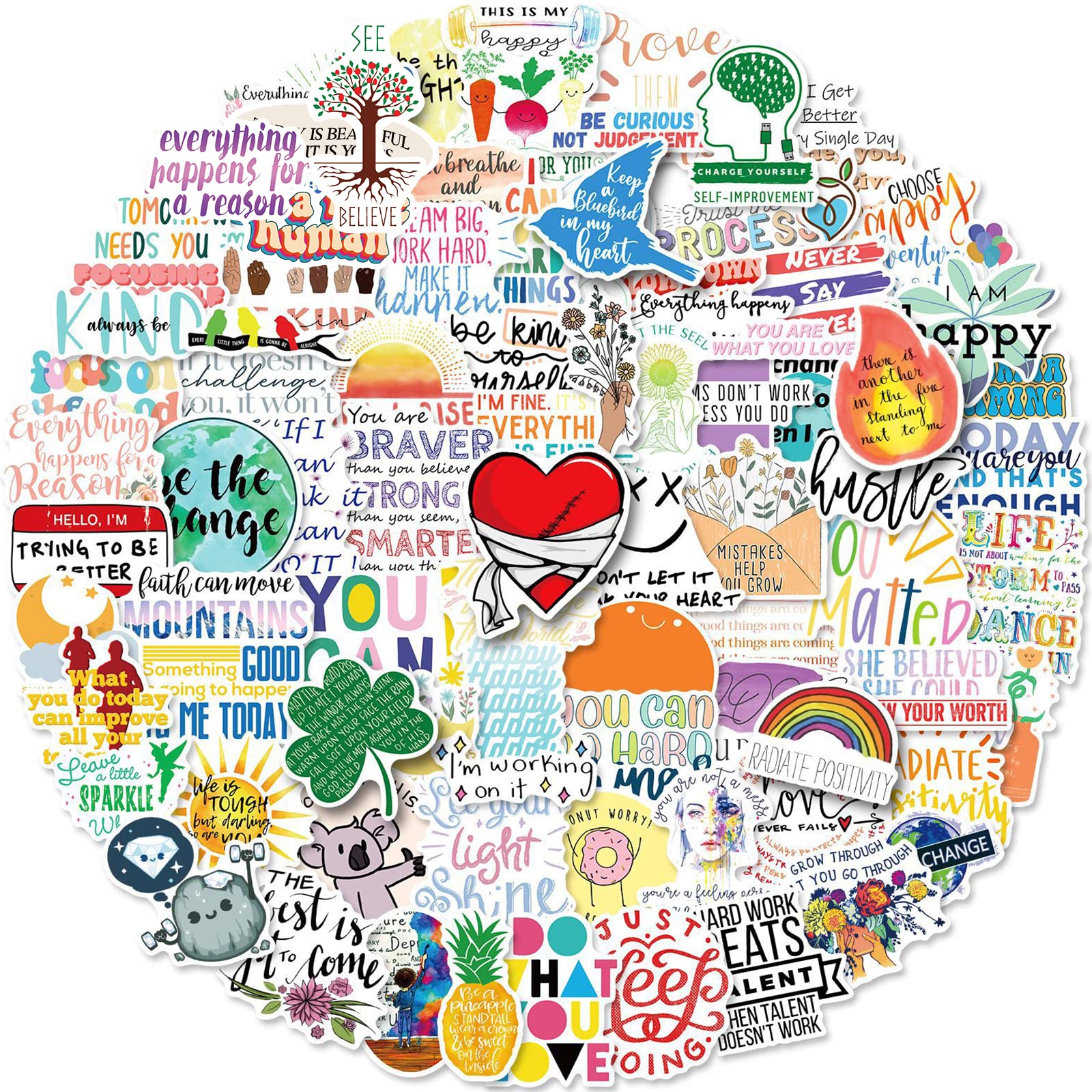 - COST EFFECTIVE Each inspirational sticker pack contains 100PCS not repeatingstickers.the patterns shown in the main picture will appear,to meet your different needs.We also updated the gloss of our stickers,Visible great quality makes every cent you pay!