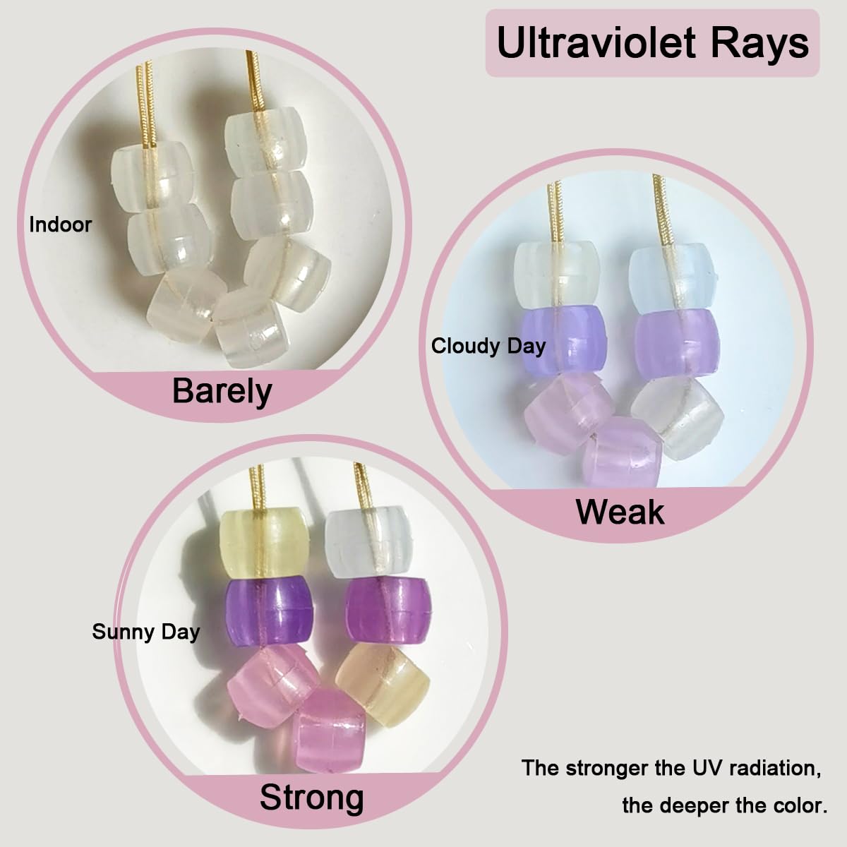 - Warm Tip: The stronger the UV radiation, the deeper the color. Meanwhile, These lose beads turn luminous in the dark only after charged in sunlight or UV light for enough time.