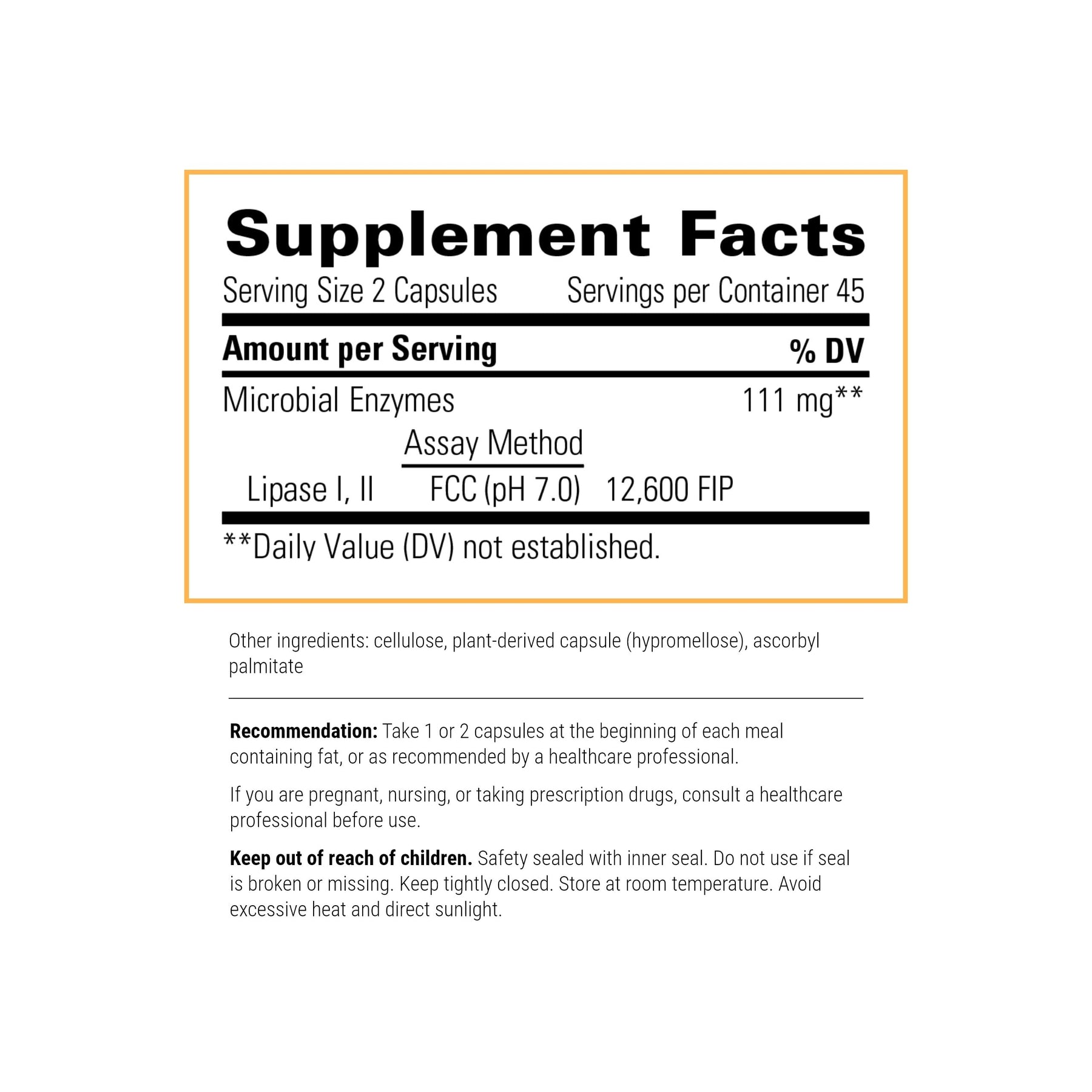 - Fat Digestion for Gut Support*: This lipase enzyme supplement supports the digestion of fats in gastrointestinal system*