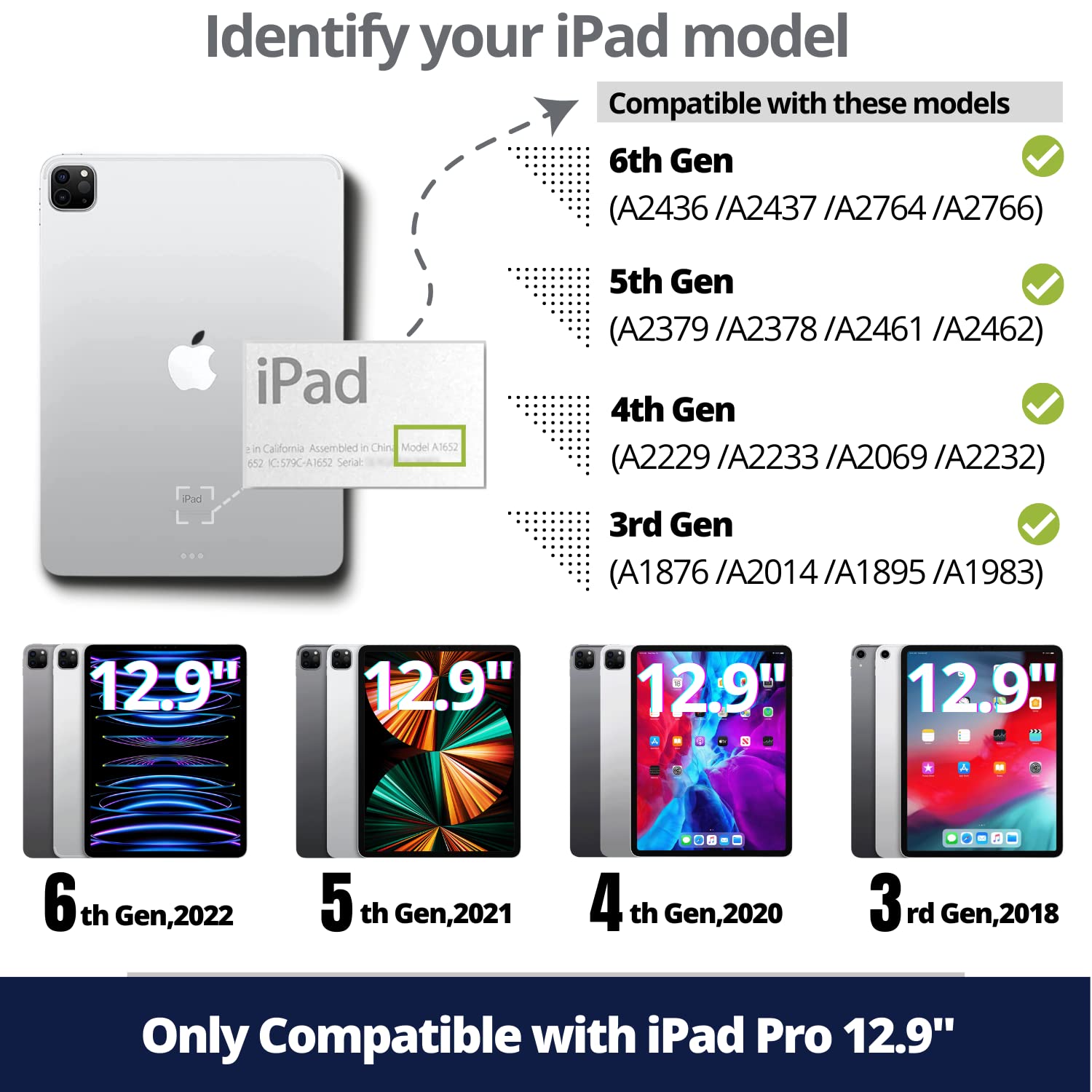 - Compatible with 12.9 inch iPad Pro 6th/5th/4th/3rd Generation6th Gen 2022(A2436 ,A2437, A2764, A2766); 5th Gen 2021(A2378, A2379, A2461, A2462); 4th Gen 2020(A2229, A2069, A2232, A2233); 3rd Gen 2018(A1876, A2014, A1895, A1983). The 12.9-inch iPad Pro case with keyboard & pencil holder & charging slot transforms your device into a high-performance, user-friendly, and protected laptop! It's the ultimate choice for travel, business, and learning