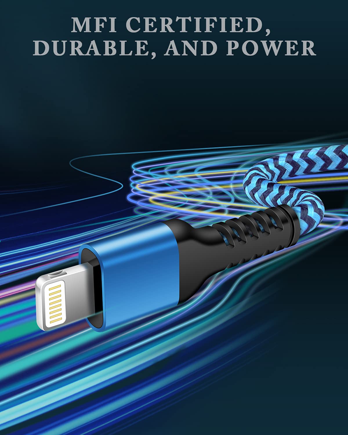 - Original Lightning Cables – iPhone Charger, Nylon Braided 6FT USB Charging Cord for iPhone 14 13 12 Pro Max /11 Pro/XR/XS/Max/SE/10/8, MFI Certified Data Sync Transfer Connector Plug Fast Power Line Lightning Cable Multi Pack by Haoano