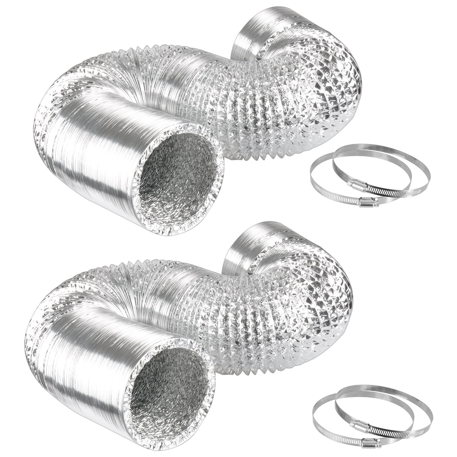 - Original Ducting – GLDUCT8X25C 8 inch 25 feet Non-Insulated Flex Air Aluminum Foil Ducting Dryer Vent Hose for HVAC Ventilation with 2 Clamps, 8, Silver by iPower