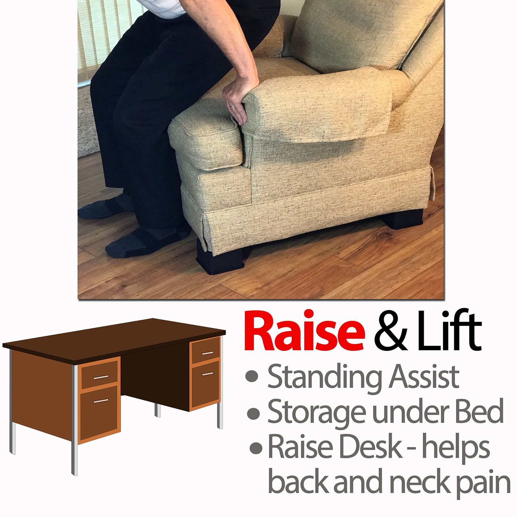 - MULTI-UTILITY FITS ON MOST HOME FURNITURE - Our product allows you to raise most desks, chairs, sofas, caster wheel furniture, and beds.