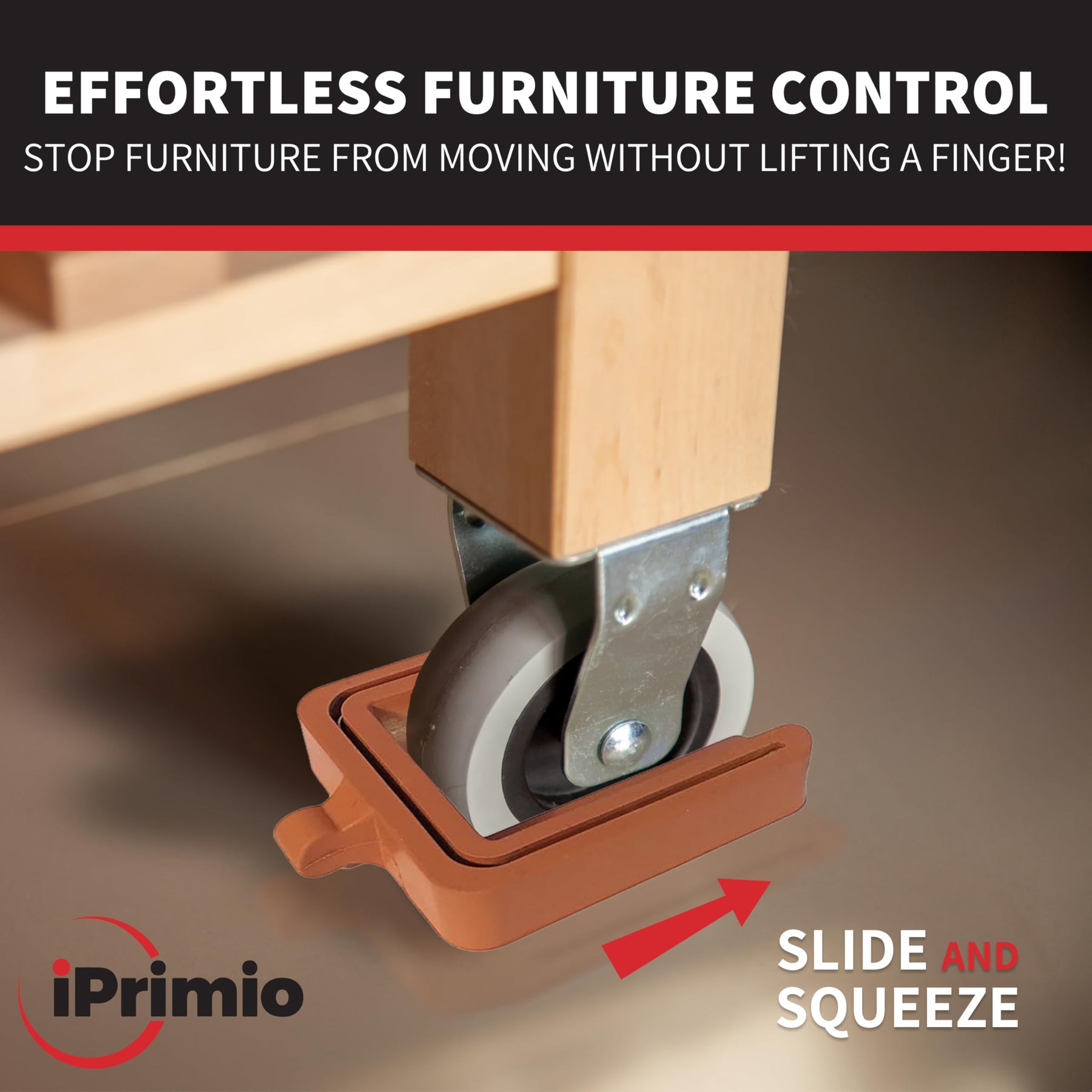 - Original Furniture Cups – No Lift Wheel Stoppers for Rolling Furniture - Bed and Furniture Stopper - Requires No Lifting of Bed - Keeps Bed and Furniture from Sliding Bed Caster Stopper - Solid Rubber (4 Pack, Brown) by iPrimio