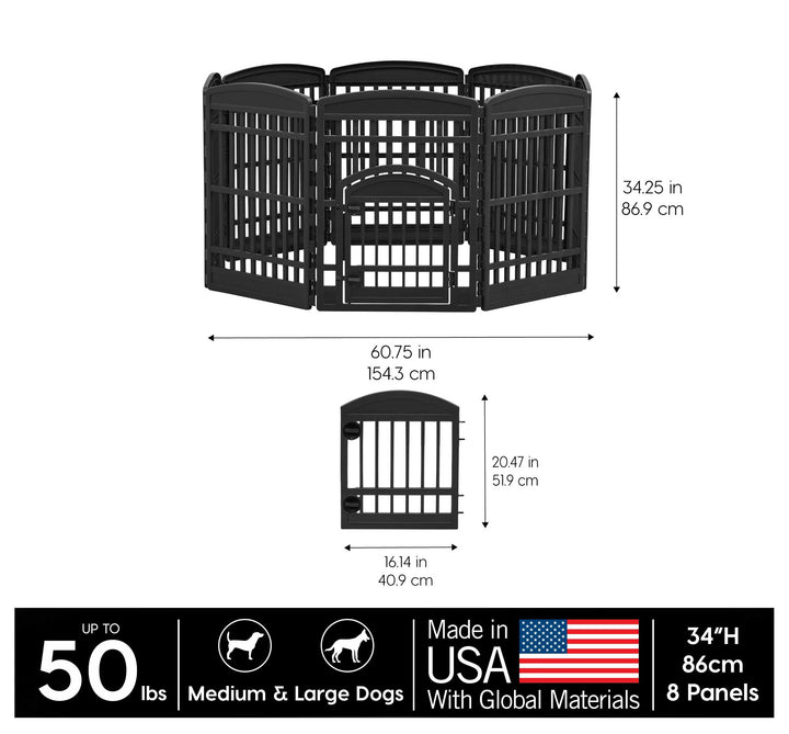 - Original Playpens – USA 34 8-Panel Pet Dog Puppy Playpen with Door, For Medium and Large Dogs, Keep Pets Secure, Easy Assemble, Fold It Down, Easy Storing, Customizable, Black by IRIS