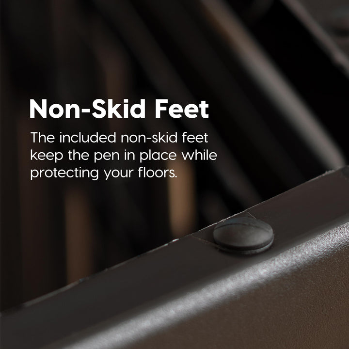 - EASY ASSEMBLY - Built with convenience in mind, the pet playpen can be put together easily by snapping the panels into place. It comes with 7 non-door panels and 1 panel with a door, each panel featuring rubber feet to protect flooring and keep the pet pen in place.