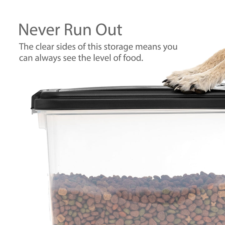 - Original Food Storage – USA Airtight Dog Food Storage Container, Up to 30 lbs, Attachable Wheels, for Dog Cat Bird and other Pet Food Storage Bin, Keep Fresh, Easy Mobility, BPA Free, Black by IRIS