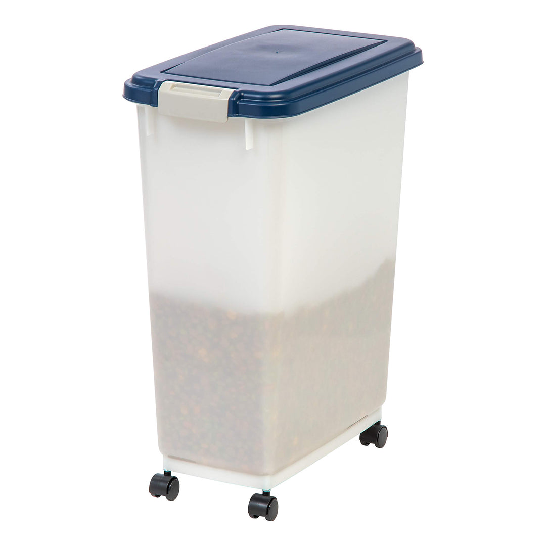 - Original Food Storage – USA Airtight Dog Food Storage Container, Up to 38 lbs, Attachable Wheels, For Dog Cat Bird and Other Pet Food Storage Bin, Keep Fresh, Easy Mobility, BPA Free, Navy/Pearl by IRIS