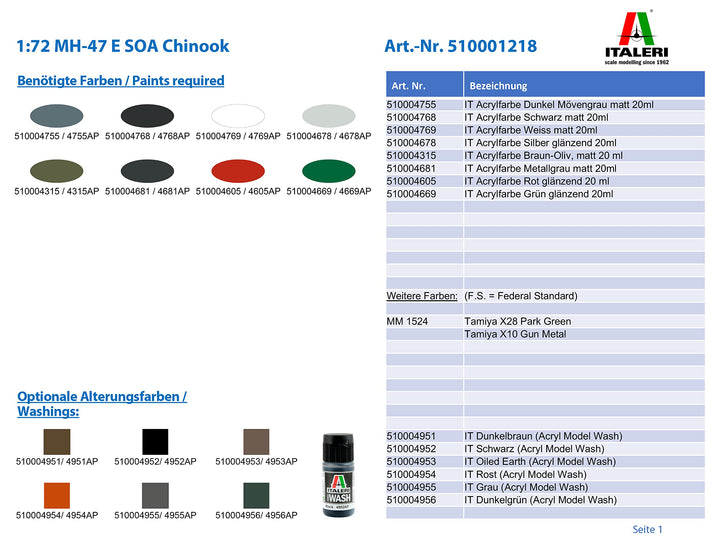 - Original Helicopter Kits – Italeri 1218S 1/72 Mh-47 E SOA Chinook by TAMIYA