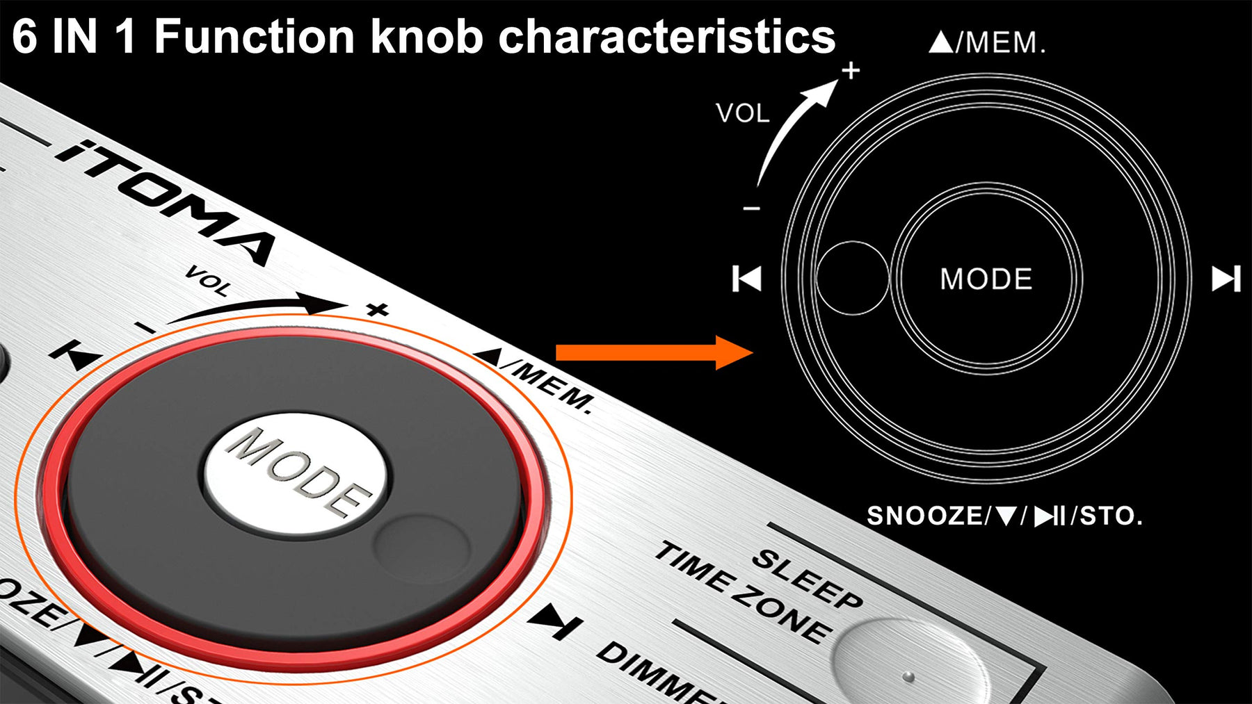 - 6 IN 1: This clock radio combines 6 functions: Digital Clock Alarm Radio Dual alarm clock to wake you up; FM radio for listening to news ; Bluetooth function; Sleep Timer; Manual dimmer control for eye care; USB charging port for mobile device and easy to charge your phone near the bed.