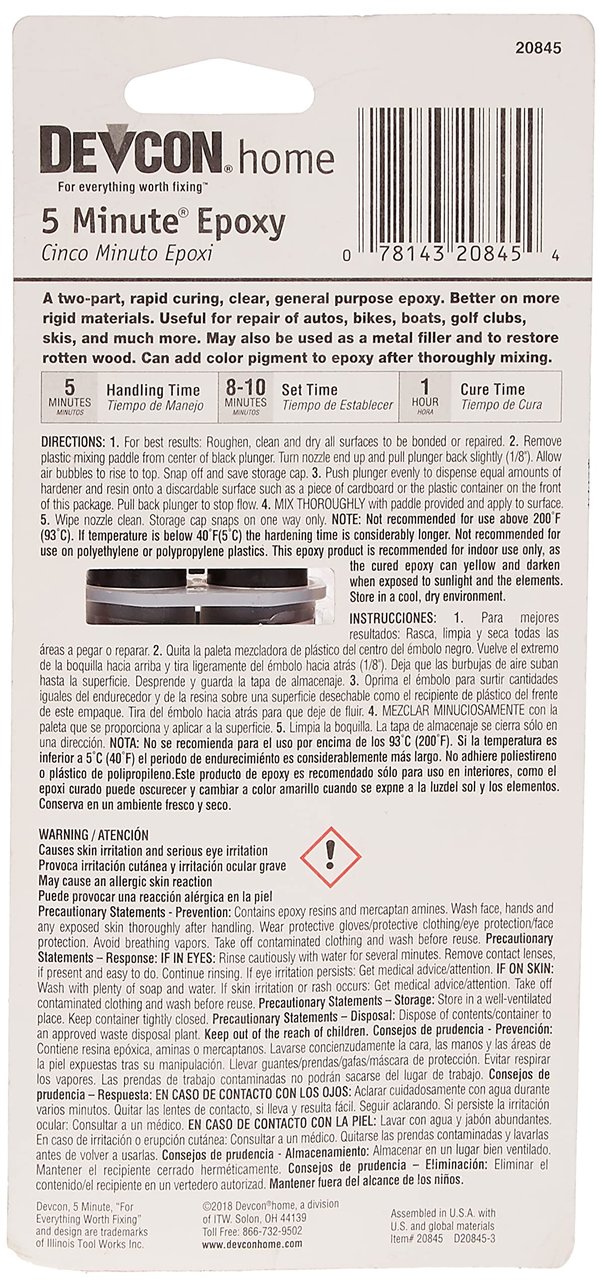 - Original Cyanoacrylate Adhesives – 20845 Home 5 Minute 0.84 oz, 1-Pack, Clear High Strength Epoxy Anchoring Adhesive by ITW Devcon