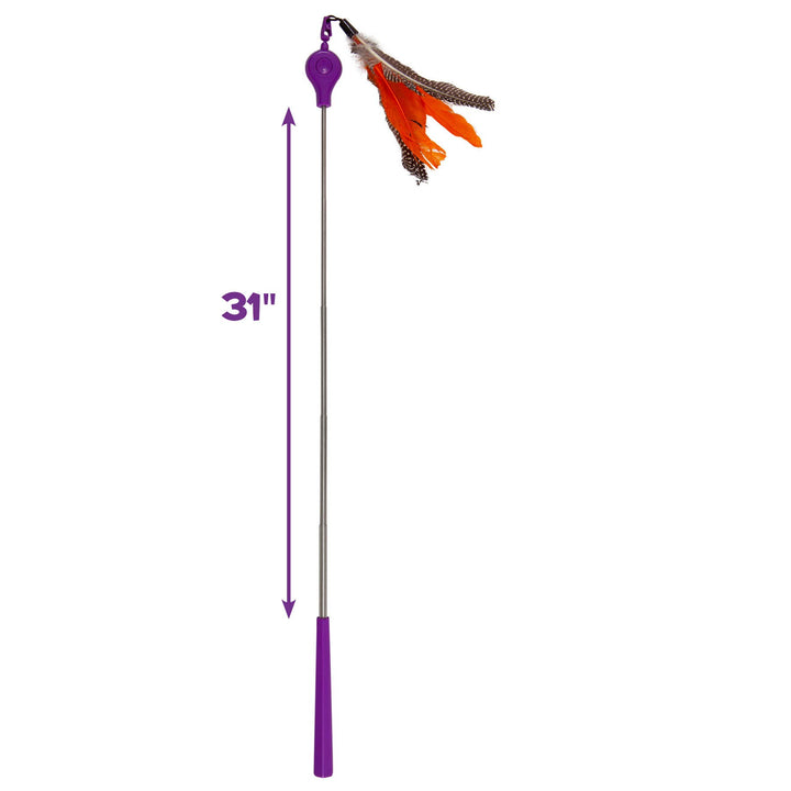 - Let'S Play: This soaring feather wand toy engages in your cat or kitten's natural instincts by stimulating the hunt The interactive toy wand is retractable can be adjusted to a length of up to 32