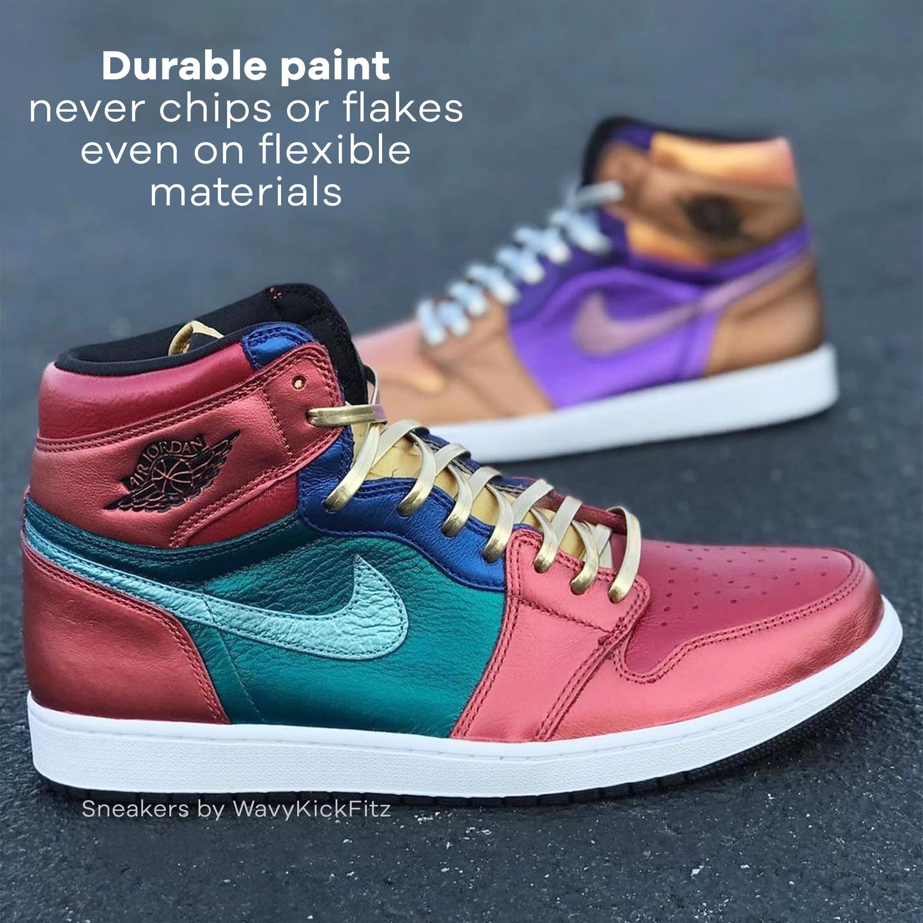 - Durable & Long Lasting - Acrylic shimmer paint won't flake, crack, or peel on flexible surfaces such as fabric, leather and canvas and is lightfast and colorfast, able to stand up to washing and direct sunlight. These colors will stay bright and vibrant for years to come