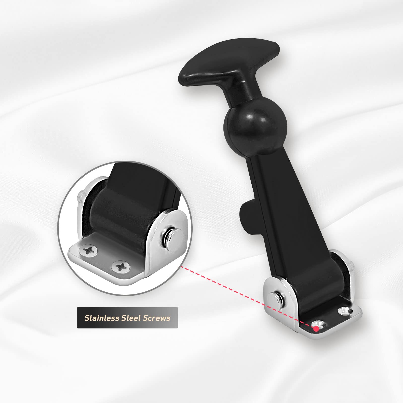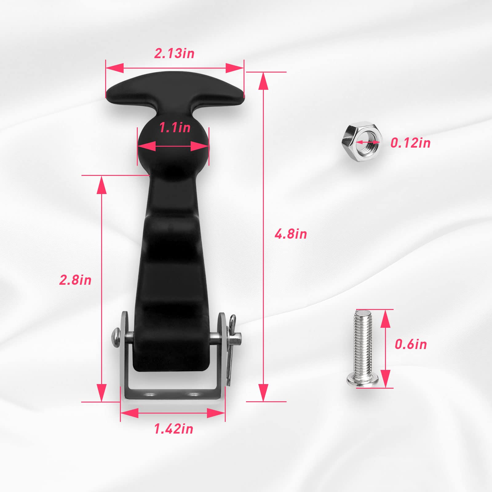 - RUBBER MATERIAL - The T-handle draw latches are made of elastic flexible rubber, which can reduce vibration, come with 10pcs screws and 4pcs stainless steel brackets; Each size is about 4.9 inches.