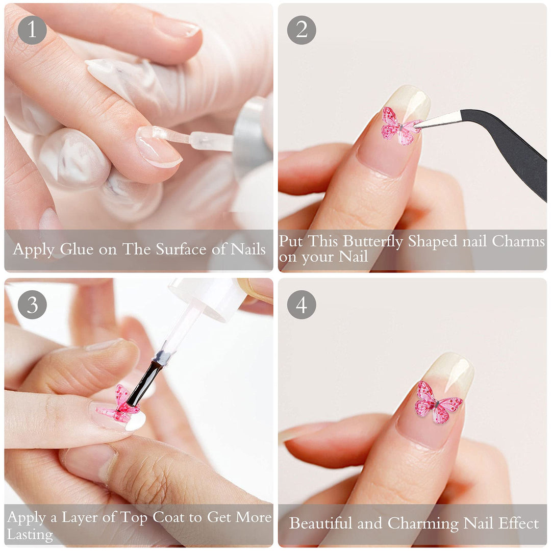 - Easy to Use- Use hard gel to fix the decals into position after you are done coloring your nails. Take the butterfly decals on nails with glue,then cured it by UV or LED lamp to protect the color of the butterfly, with durable sparkling and brightness