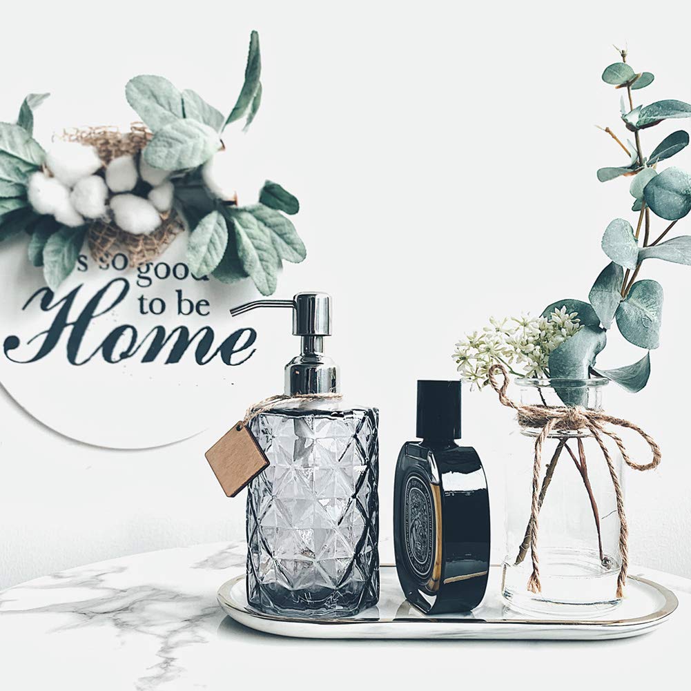- Original Lotion Dispensers – Diamond Design Glass Soap Dispenser with 304 Rust Proof Stainless Steel Soap Pump, 12 Ounce Kitchen Soap Dispenser for Bathroom, Hand Soap, Dish Soap (Grey) by JASAI