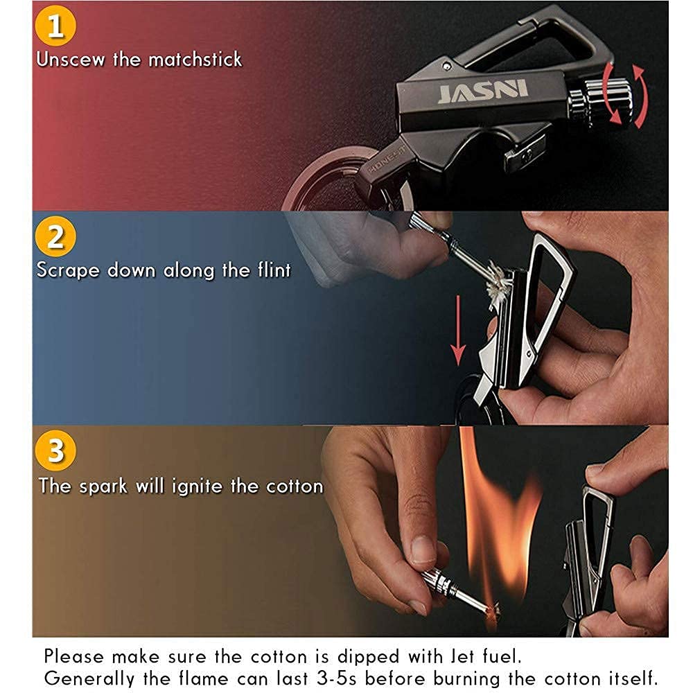 - Original Emergency Fire Starters – Keychain Multitool with Flint Metal Matchstick Fire Starter Bottle Opener Mountaineering Buckle Mini Flashlight Car Key Rings Kerosene Refillable Lighter EDC Gift Ideas Emergency by Jasni