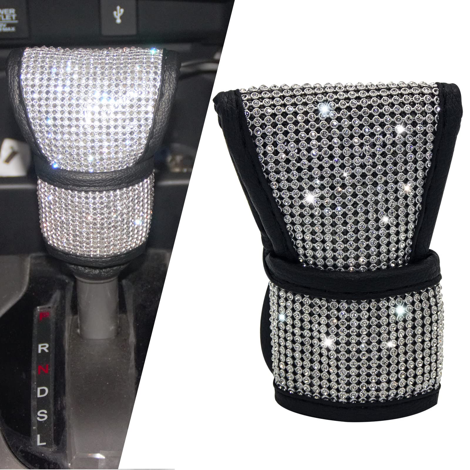 - Original Knobs – Bling Auto Gear Shift Knob Cover for Women/Lady/Girl - PU Leather Shift Gear Cover with Bling Rhinestones - Car Interior Accessories Universal Fit for SUV Truck (1 Pack Gear Shift Cover) by jaxiria