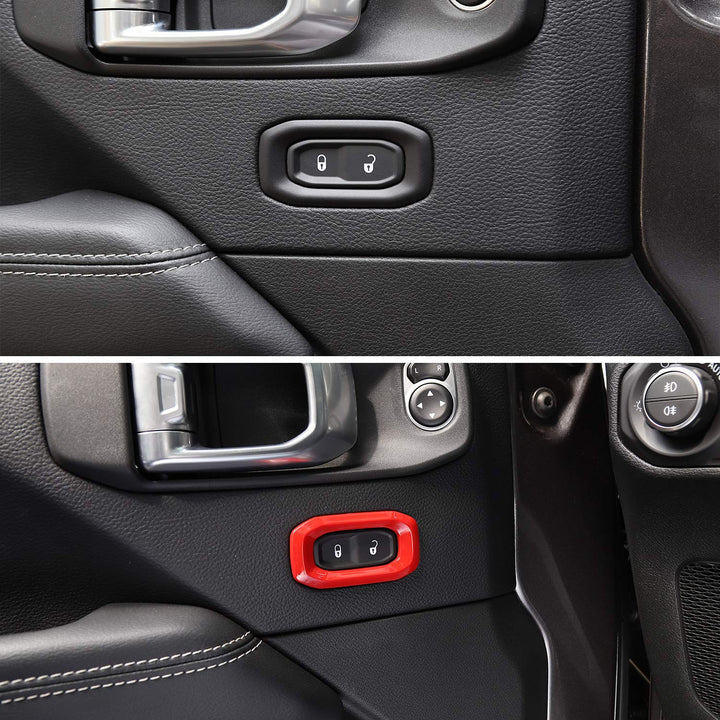 - Original Door Lock – Door Lock Switch Trim Cover Interior Accessories Compatible with Jeep Wrangler 2018-2023 JL JLU Sport Sahara Rubicon & 2020-2023 Gladiator JT, Red by JeCar
