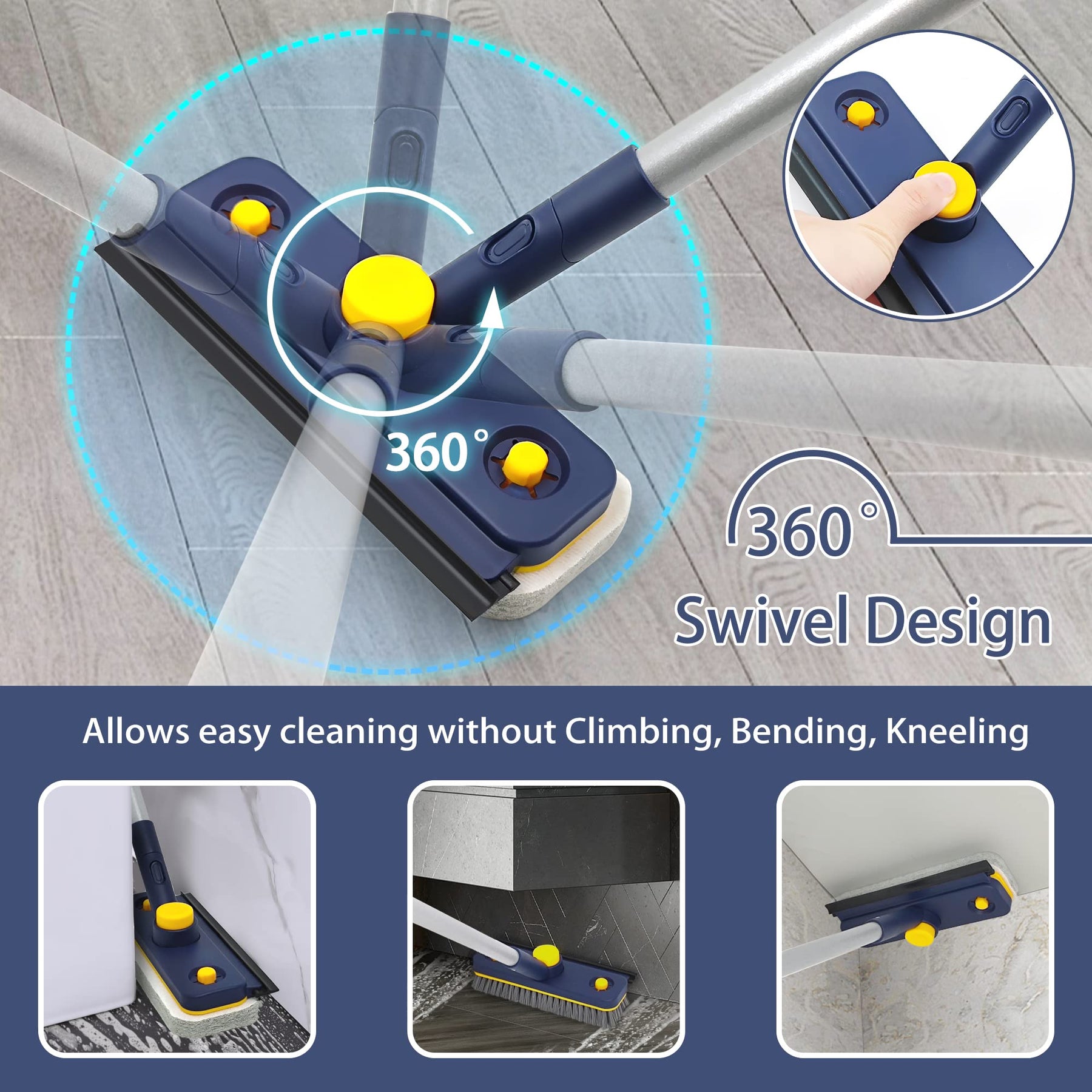 - Cleaning Corners Thoroughly: 360° rotating head on this shower cleaning brush can be locked in any different angles, flexibly reach dead ends, corners or other narrow places. No need to worry about that the tile floor scrubber loosening or flipping around