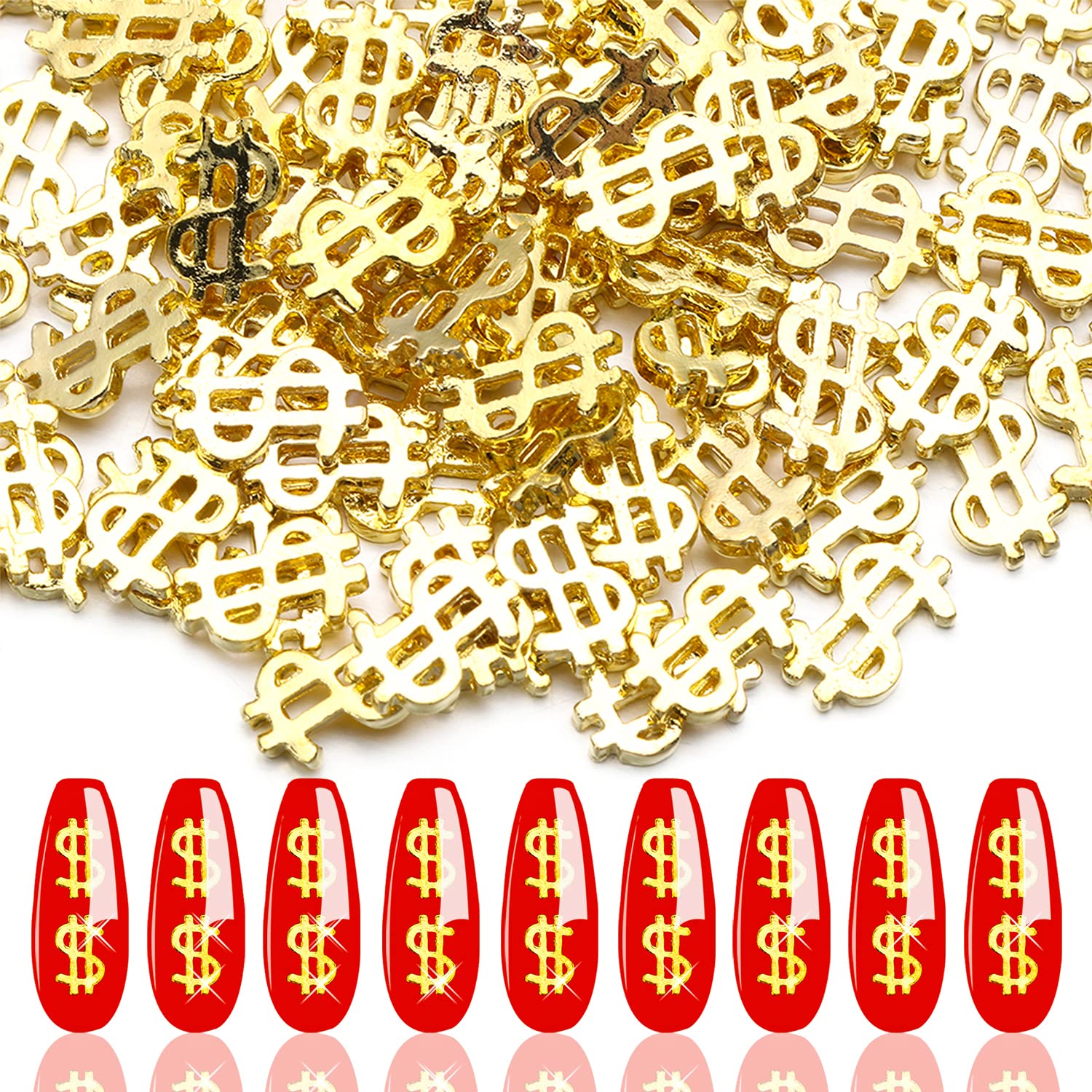 - PACKAGE CONTENT: You will receive 100 pieces of 3D golden alloy Dollar sign nail charms studs, sufficient quantity is enough for you to use and replace in the daily nail art process.