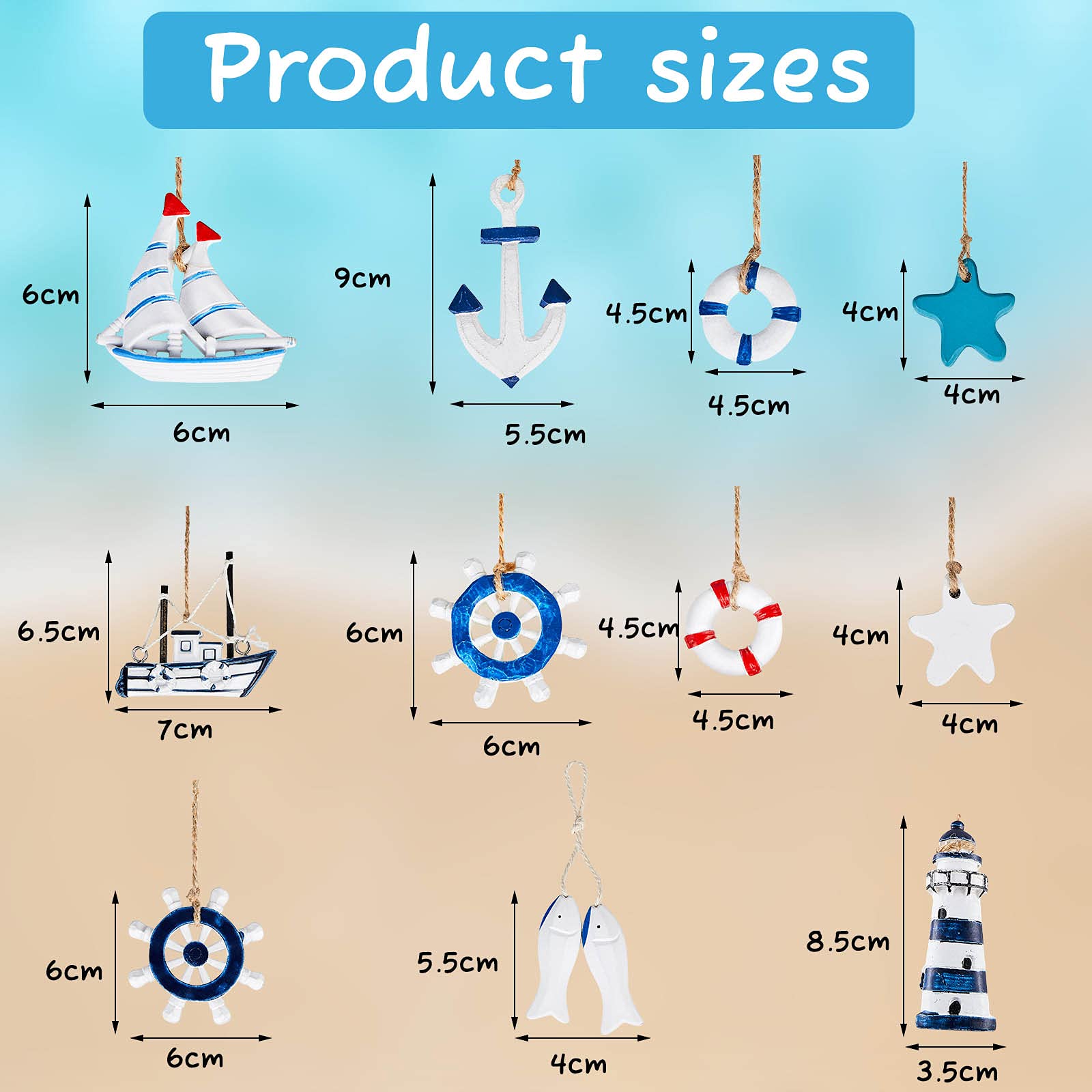 - Original Hanging Ornaments – 22 Pcs Nautical Ornament Beach Ornaments Coastal Nautical Tree Starfish Anchor Sea Life Beach Decorations for Home Decor Small Party Gift Office by Jetec