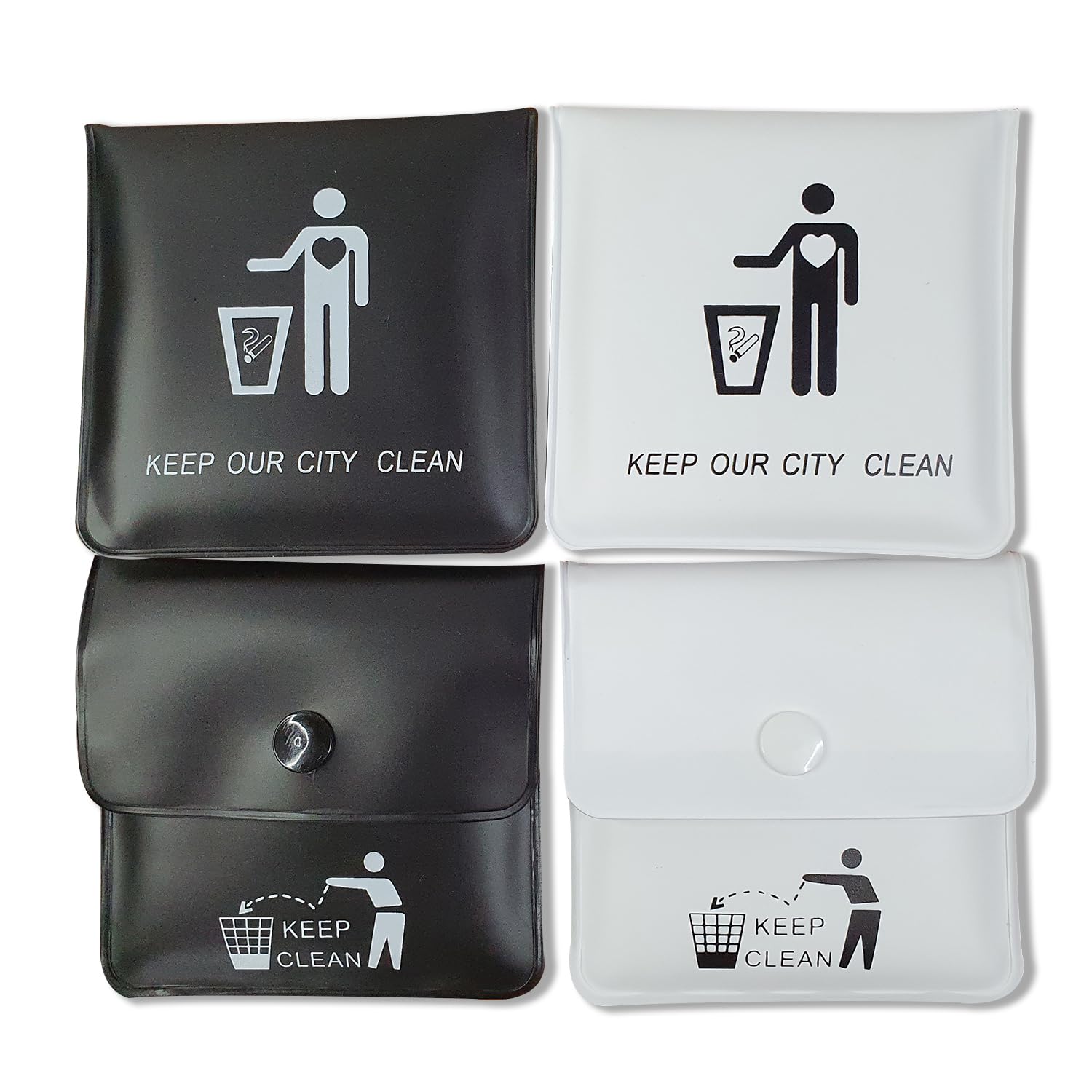 - REUSABLE TRAVEL ASHTRAY - A 70% drop in cigarette litter has been achieved in areas where this outdoor cigarette butt container has been utilized. They are cheap enough to be disposable but are also reusable pouches. These pocket ashtrays for cigarettes can easily be cleaned using water with a bit of dishwashing soap or detergent to be used time and time again.