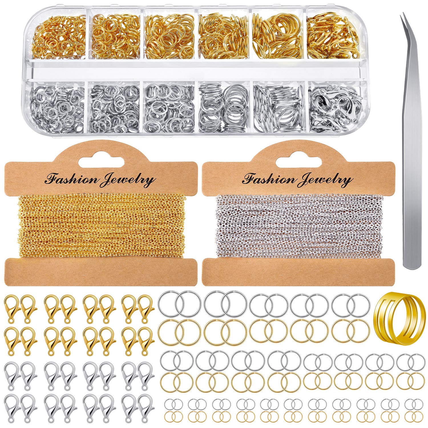 - Original Jump Rings – Jewelry Making Chains 49.2 Feet Stainless Steel Link Chains 1000 Pieces Jump Rings 40 Pieces Lobster Clasps with Curved Tweezers and Brass Jump Ring Opener for Women Men DIY Jewelry (Gold, Silver) by Hicarer