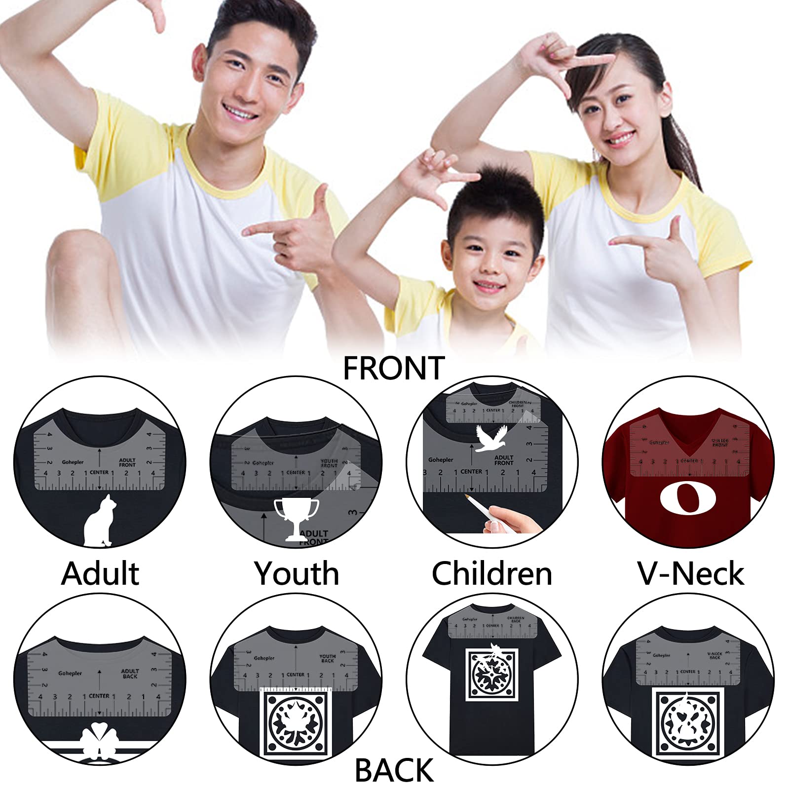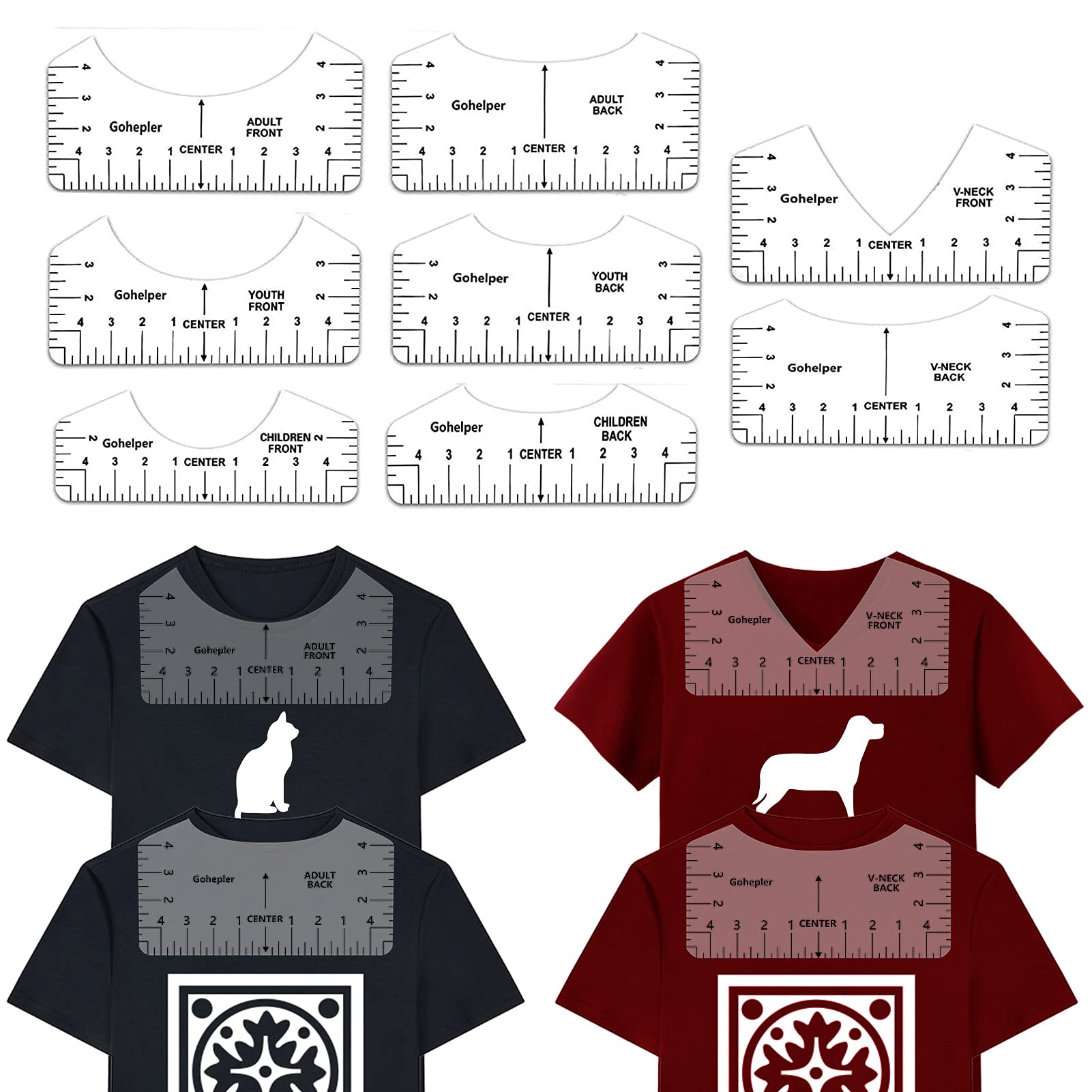 - Original Rulers – T-Shirt Alignment Ruler Guide Tool 8 Pack T-Shirt Rulers Transparent V-NeckRound T Ruler for Adults Youth Toddler Infant, Front and Back Measurement by Jifu