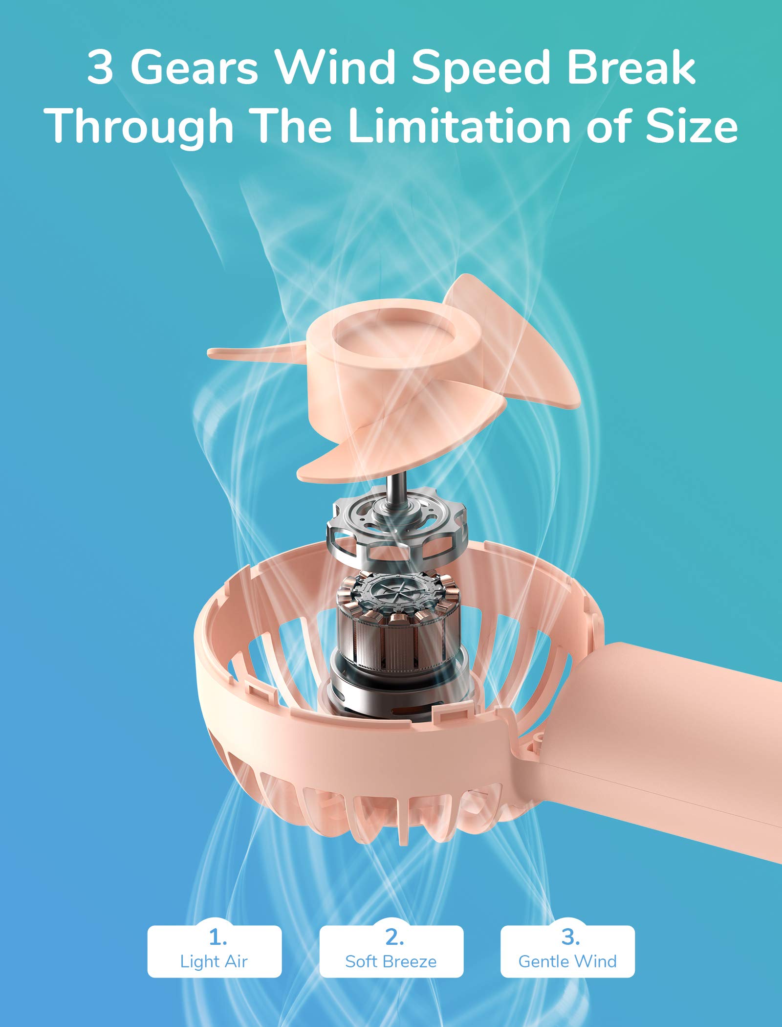 - Original Personal Fans – Mini Fan Battery Operated Handheld with 2000 mAh or USB Powered Personal Fan,3 Speeds,Enhanced Airflow, Rechargeable Quiet Pocket for Home,Outdoor-Pink by JISULIFE