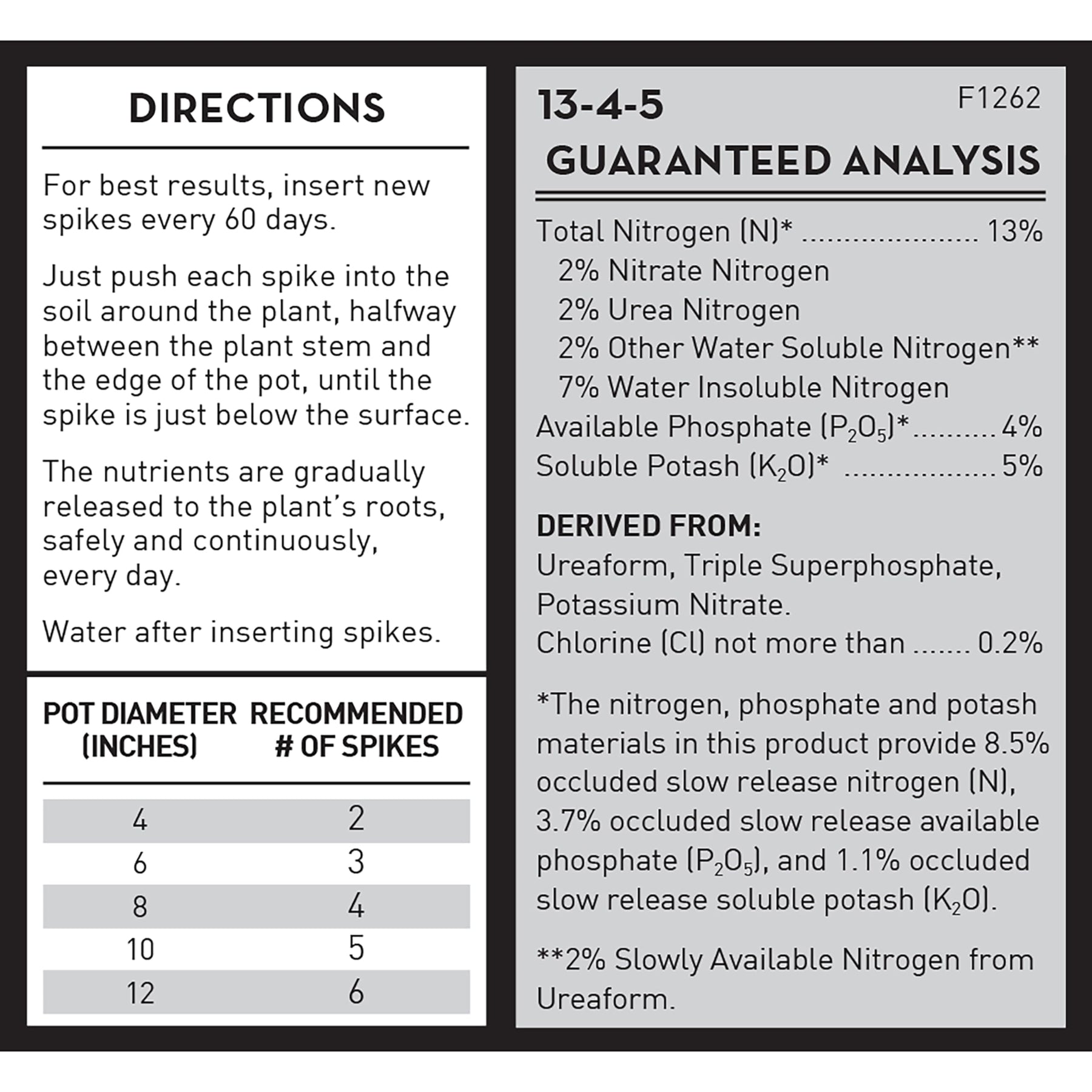 - Application is simple and slow release fertilizer spikes should be replaced every 60 days
