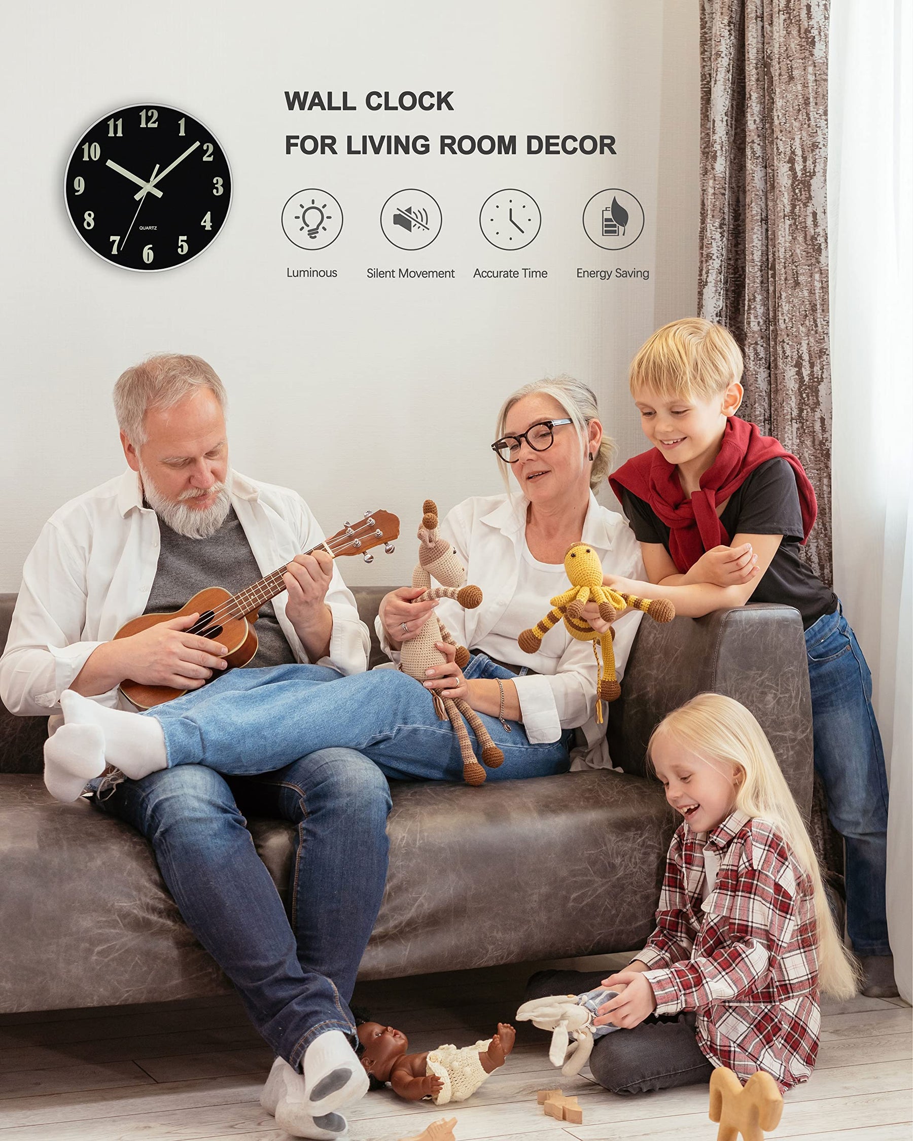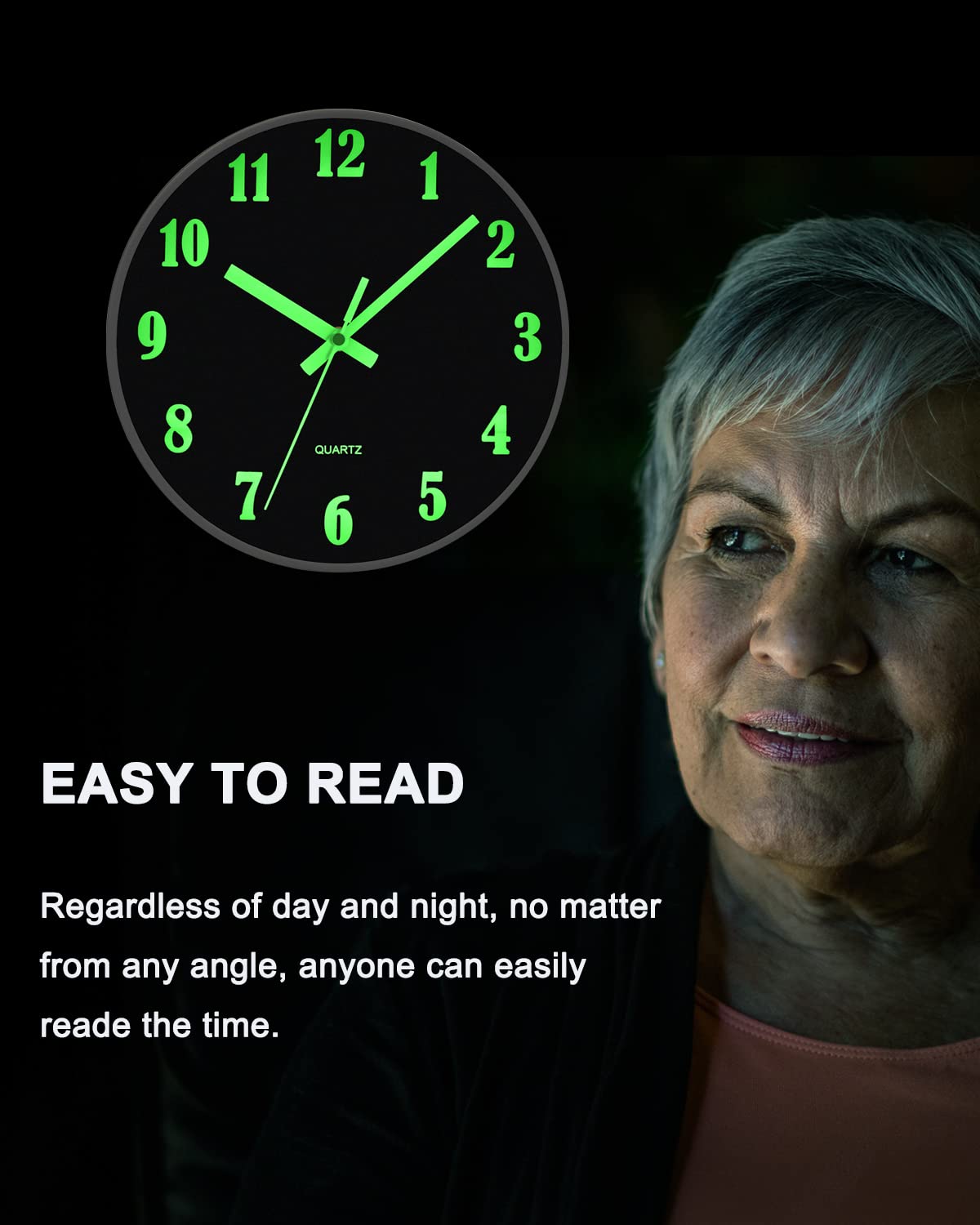 - Original Wall Clocks – Glow in The Dark Clock, 12 Inch Modern Silent Non Ticking Wall Clocks Battery Operated, Night Light Wall Clock for Living Room Decor, Wall Clock Decorative for Kitchen Bedroom (Green) by JoFomp