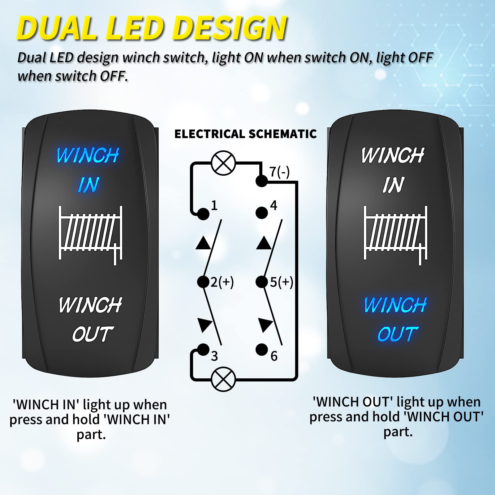 - Original Switches – Joinfworld Winch Switch Winch in Winch Out Momentary ON/Off/ON 7 Pin Winch Rocker Switch Toggle 3 Way 20A 12V 10A 24V DC Waterproof Blue for ATV UTV Polaris Automotive Marine Boat, DR-A11L27GBL/LJ56 by Generic