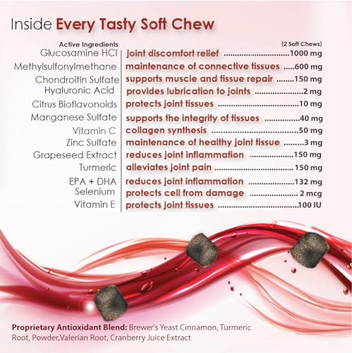 - Original Hip & Joint Care – TS Joint Supplement Vet Formulated Pain & Inflammation Relief Treats Hip Dysplasia & Arthritis, Glucosamine, Chondroitin, Turmeric, MSM, HA, Creatine, Omega 3 EPA + DHA.120 Soft Chews by Joint Max