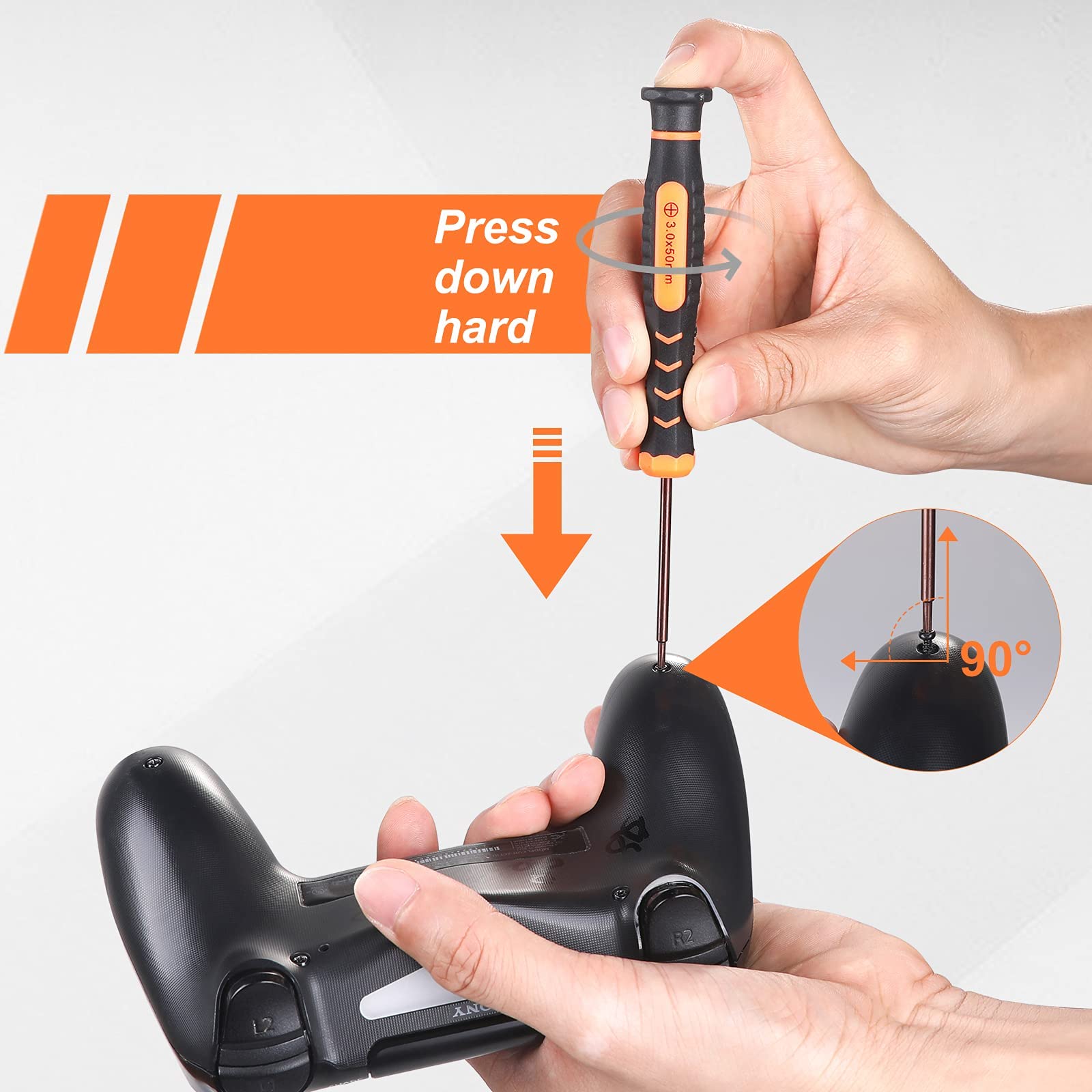 - Screwdriver set for ps4 ps5-- PH00 (2.0mm) Phillips screwdriver is used for PS4 and PS5 controller ; PH0 (3.0mm)/T8 screwdriver is used for PS4 game console; PH1 (4.0mm) Phillips screwdriver is used for various household appliances , Furniture and toys.